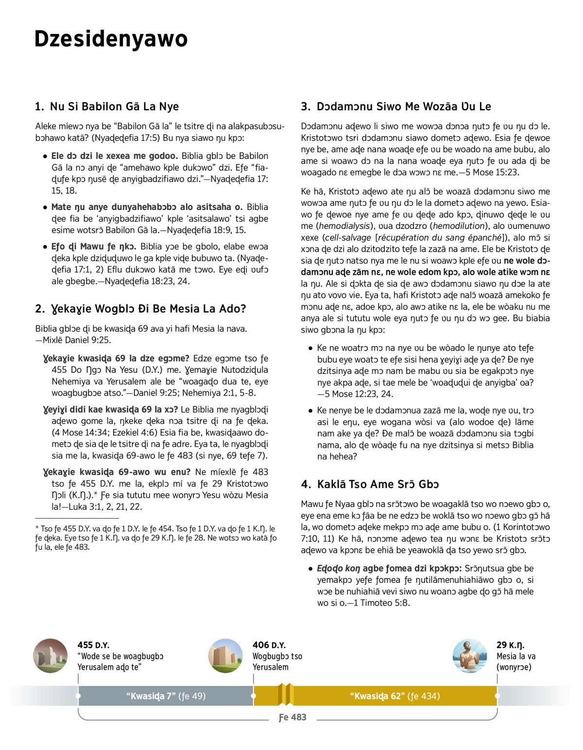 Ɣekaɣie kwasiɖa 69-awo wu enu? Ne míexlẽ ƒe 483 tso ƒe 455 D.Y. me la, ekplɔ mí va ƒe 29 Kristotɔwo Ŋɔli (K.Ŋ.).a Ƒe sia tututu mee wonyrɔ Yesu wòzu Mesia la!—Luka 3:1, 2, 21, 22.