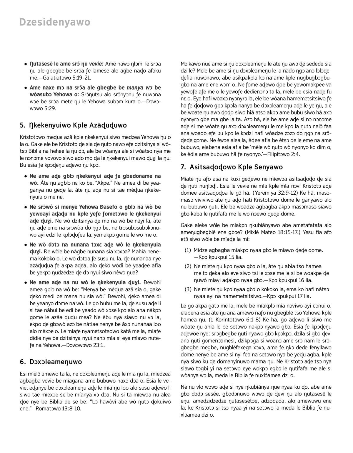 Kristotɔwo meɖua azã kple ŋkekenyui siwo medzea Yehowa ŋu o la o. Gake ele be Kristotɔ ɖe sia ɖe ŋutɔ nawɔ eƒe dzitsinya si wòtsɔ Biblia na hehee la ŋu dɔ, ale be wòanya ale si wòatso nya me le nɔnɔme vovovo siwo ado mo ɖa le ŋkekenyui mawo ɖuɣi la ŋu. Bu esia ƒe kpɔɖeŋu aɖewo ŋu kpɔ.