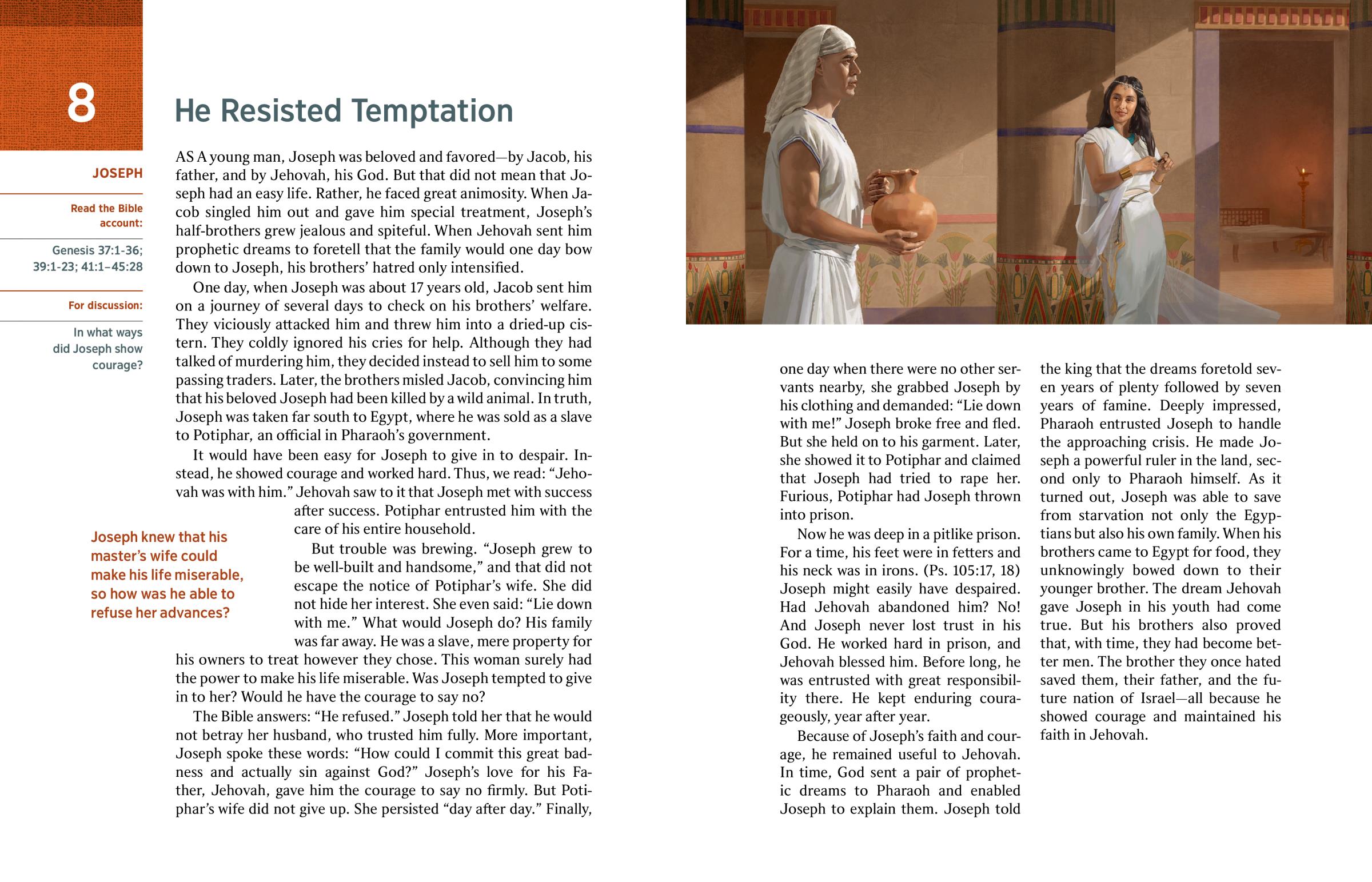 But trouble was brewing. “Joseph grew to be well-built and handsome,” and that did not escape the notice of Potiphar’s wife. She did not hide her interest. She even said: “Lie down with me.” What would Joseph do? His family was far away. He was a slave, mere property for his owners to treat however they chose. This woman surely had the power to make his life miserable. Was Joseph tempted to give in to her? Would he have the courage to say no?