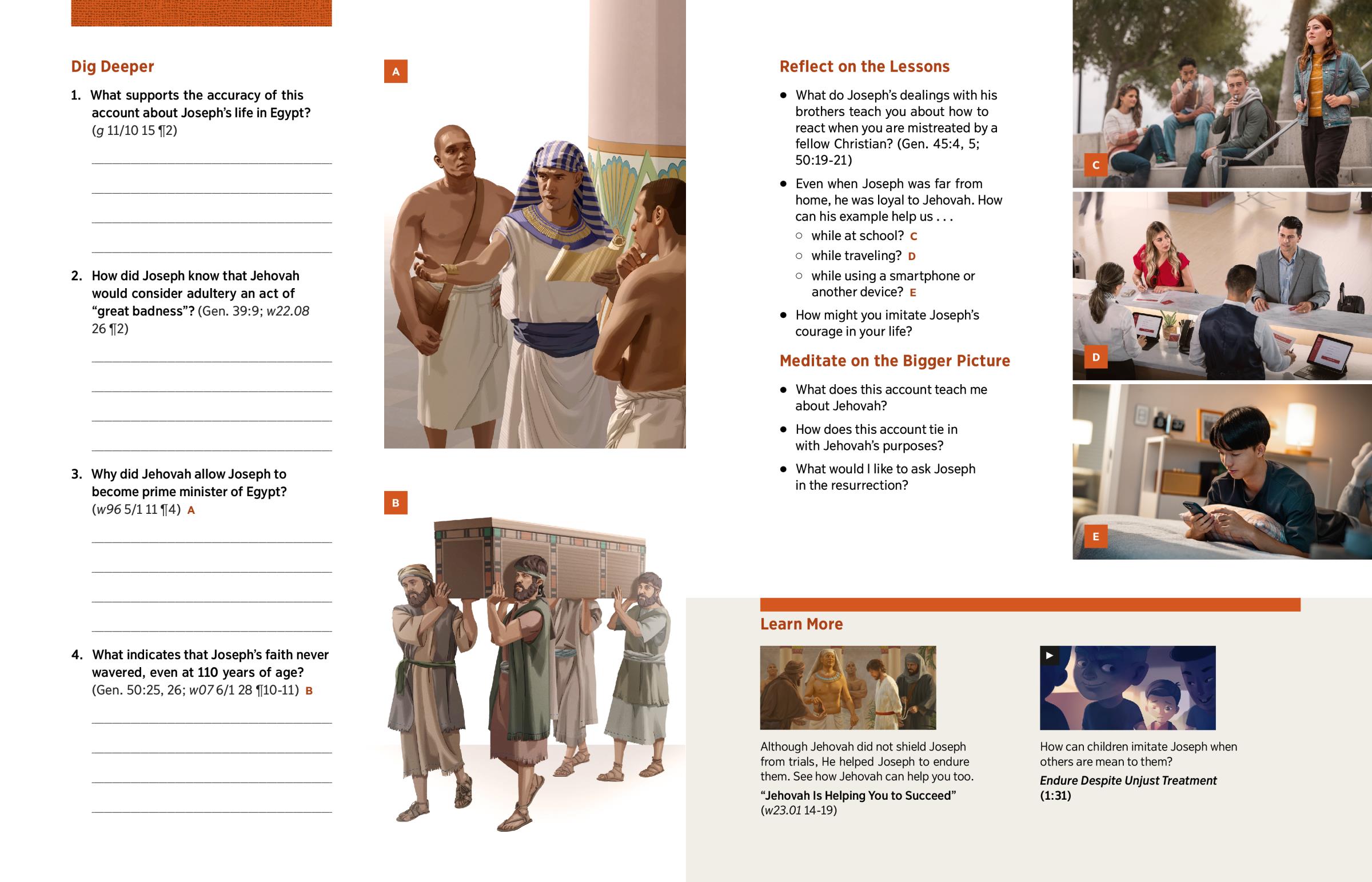 Because of Joseph’s faith and courage, he remained useful to Jehovah. In time, God sent a pair of prophetic dreams to Pharaoh and enabled Joseph to explain them. Joseph told the king that the dreams foretold seven years of plenty followed by seven years of famine. Deeply impressed, Pharaoh entrusted Joseph to handle the approaching crisis. He made Joseph a powerful ruler in the land, second only to Pharaoh himself. As it turned out, Joseph was able to save from starvation not only the Egyptians but also his own family. When his brothers came to Egypt for food, they unknowingly bowed down to their younger brother. The dream Jehovah gave Joseph in his youth had come true. But his brothers also proved that, with time, they had become better men. The brother they once hated saved them, their father, and the future nation of Israel—all because he showed courage and maintained his faith in Jehovah.