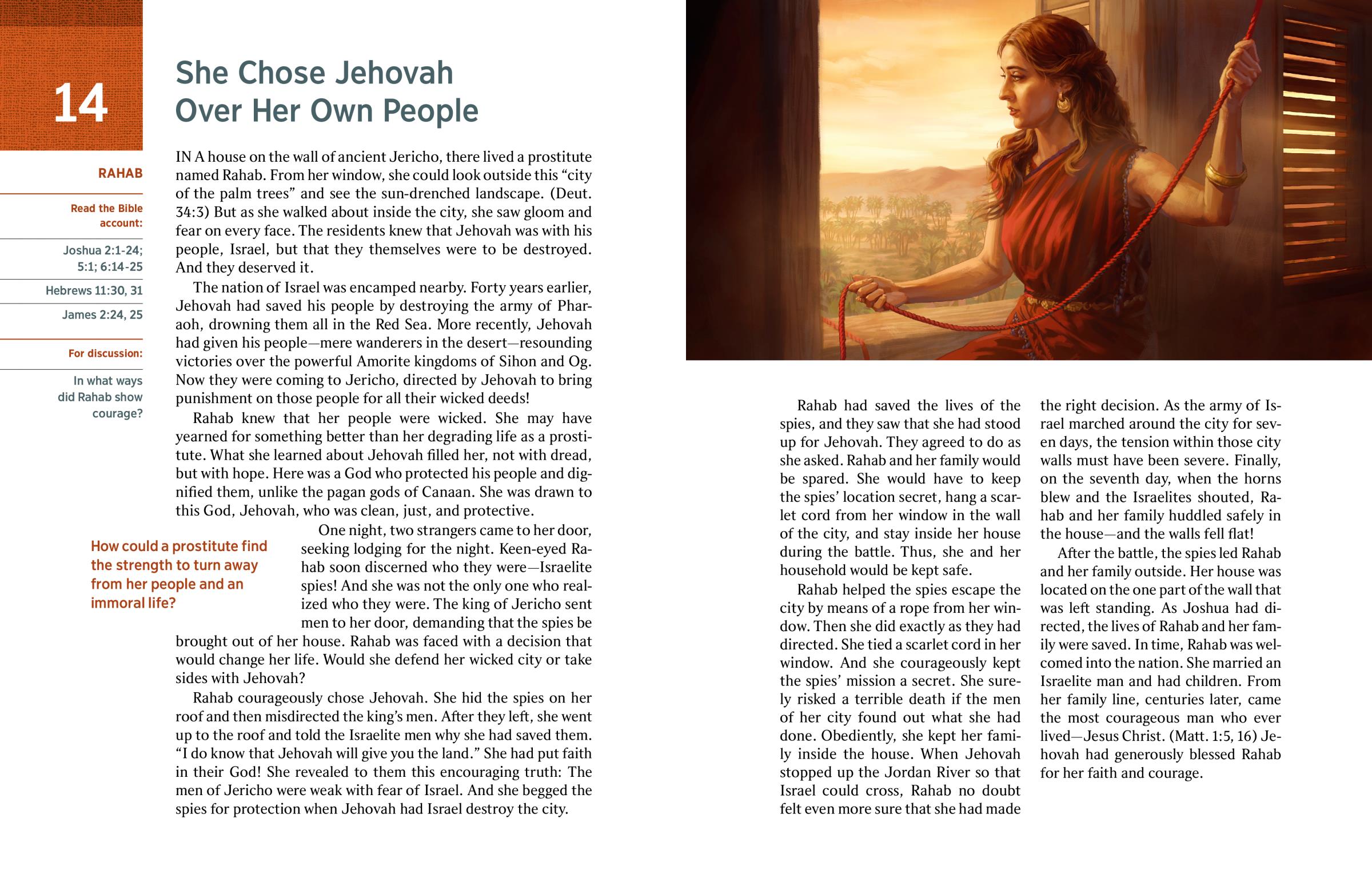One night, two strangers came to her door, seeking lodging for the night. Keen-eyed Rahab soon discerned who they were—Israelite spies! And she was not the only one who realized who they were. The king of Jericho sent men to her door, demanding that the spies be brought out of her house. Rahab was faced with a decision that would change her life. Would she defend her wicked city or take sides with Jehovah?