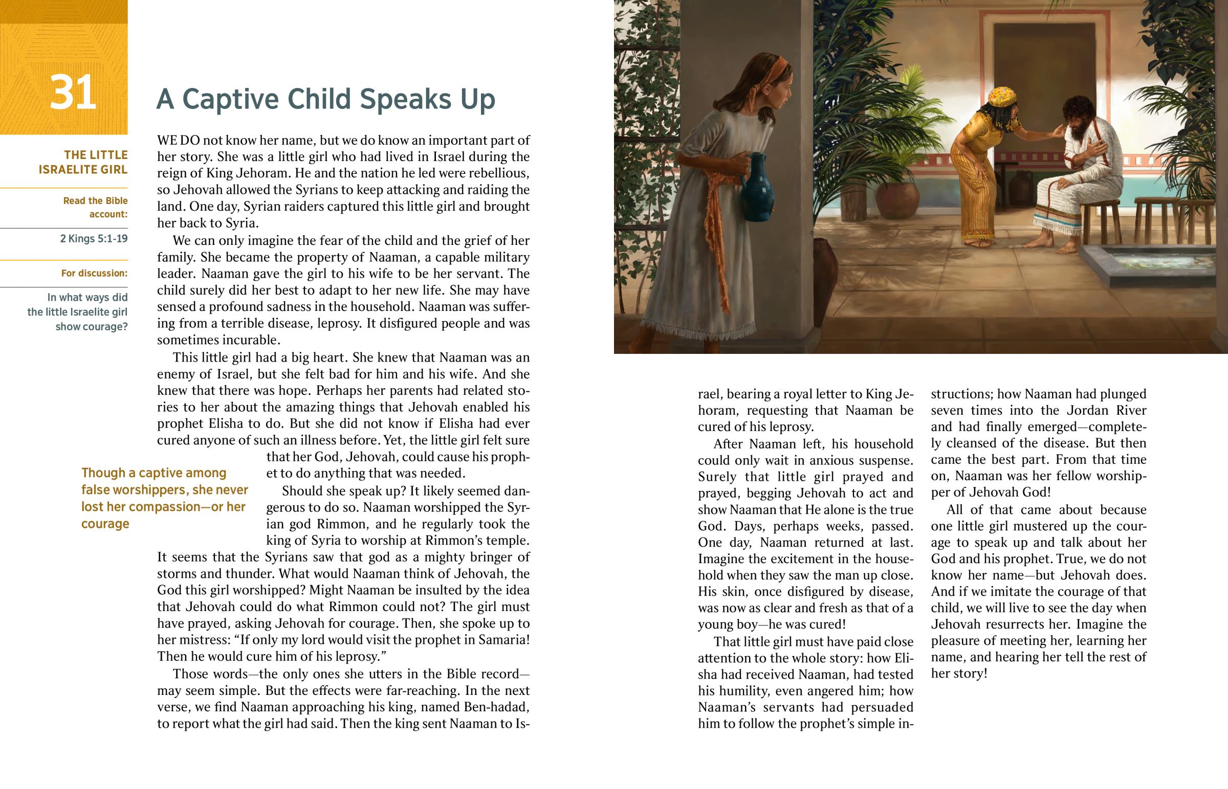 All of that came about because one little girl mustered up the courage to speak up and talk about her God and his prophet. True, we do not know her name​—but Jehovah does. And if we imitate the courage of that child, we will live to see the day when Jehovah resurrects her. Imagine the pleasure of meeting her, learning her name, and hearing her tell the rest of her story!