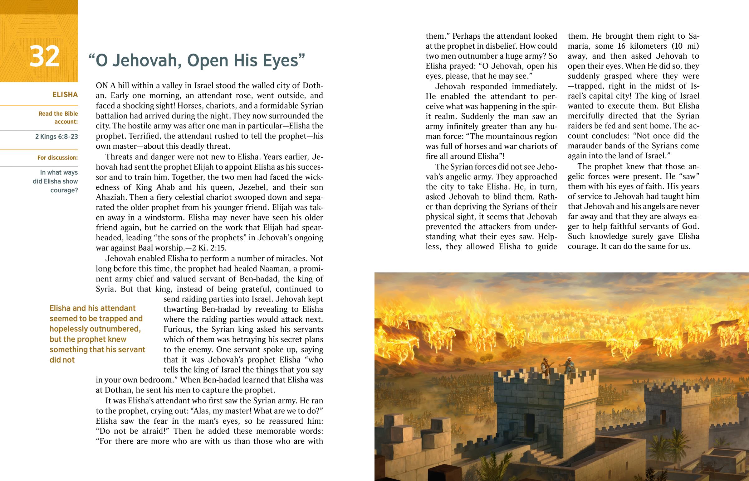 It was Elisha’s attendant who first saw the Syrian army. He ran to the prophet, crying out: “Alas, my master! What are we to do?” Elisha saw the fear in the man’s eyes, so he reassured him: “Do not be afraid!” Then he added these memorable words: “For there are more who are with us than those who are with them.” Perhaps the attendant looked at the prophet in disbelief. How could two men outnumber a huge army? So Elisha prayed: “O Jehovah, open his eyes, please, that he may see.”
