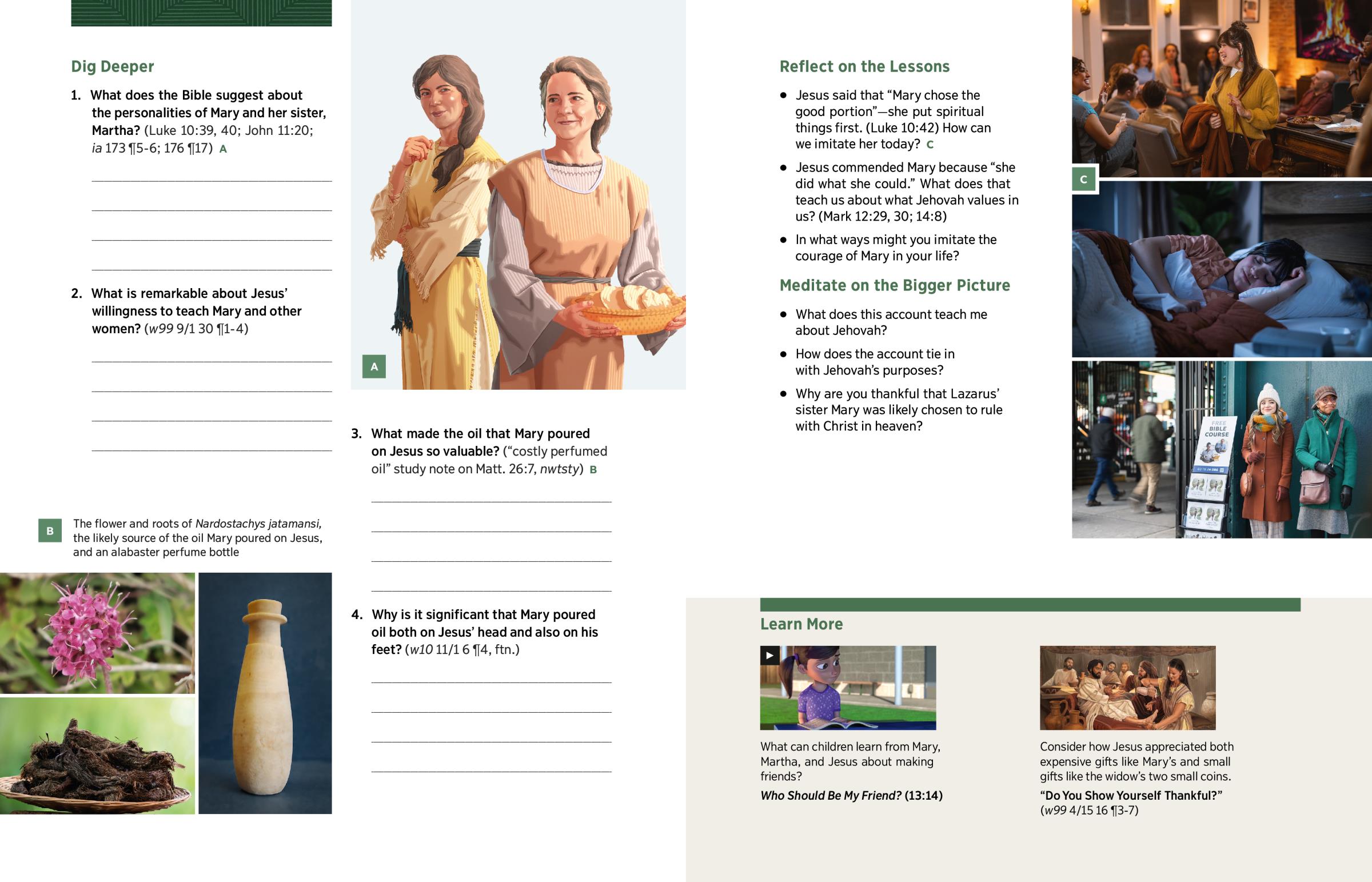 • Jesus said that “Mary chose the good portion”​—she put spiritual things first. (Luke 10:42) How can we imitate her today? C