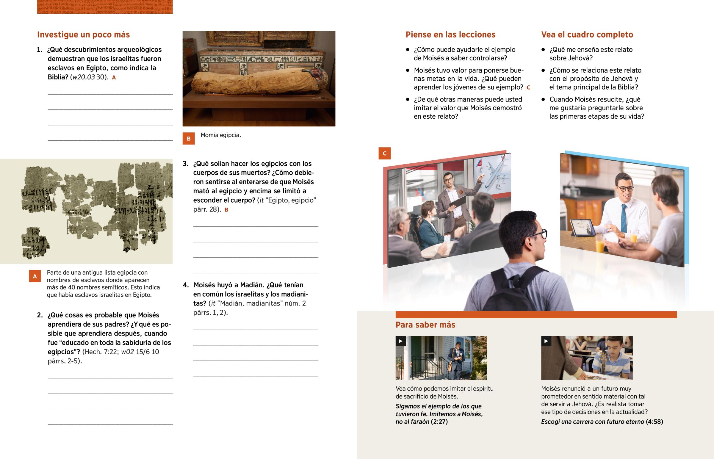 2. ¿Qué cosas es probable que Moisés aprendiera de sus padres? ¿Y qué es posible que aprendiera después, cuando fue “educado en toda la sabiduría de los egipcios”? (Hech. 7:22; w02 15/6 10 párrs. 2-5).