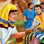 Hace que sus siervos llenen de alimento todos los sacos de ellos. Pero sin decírselo, también hace que sus siervos metan su copa especial de plata en el saco de Benjamín. Después que todos se van y están a alguna distancia en el camino, José envía a sus siervos tras ellos. Cuando los alcanzan, los siervos dicen: ‘¿Por qué han robado la copa de plata de nuestro amo?’