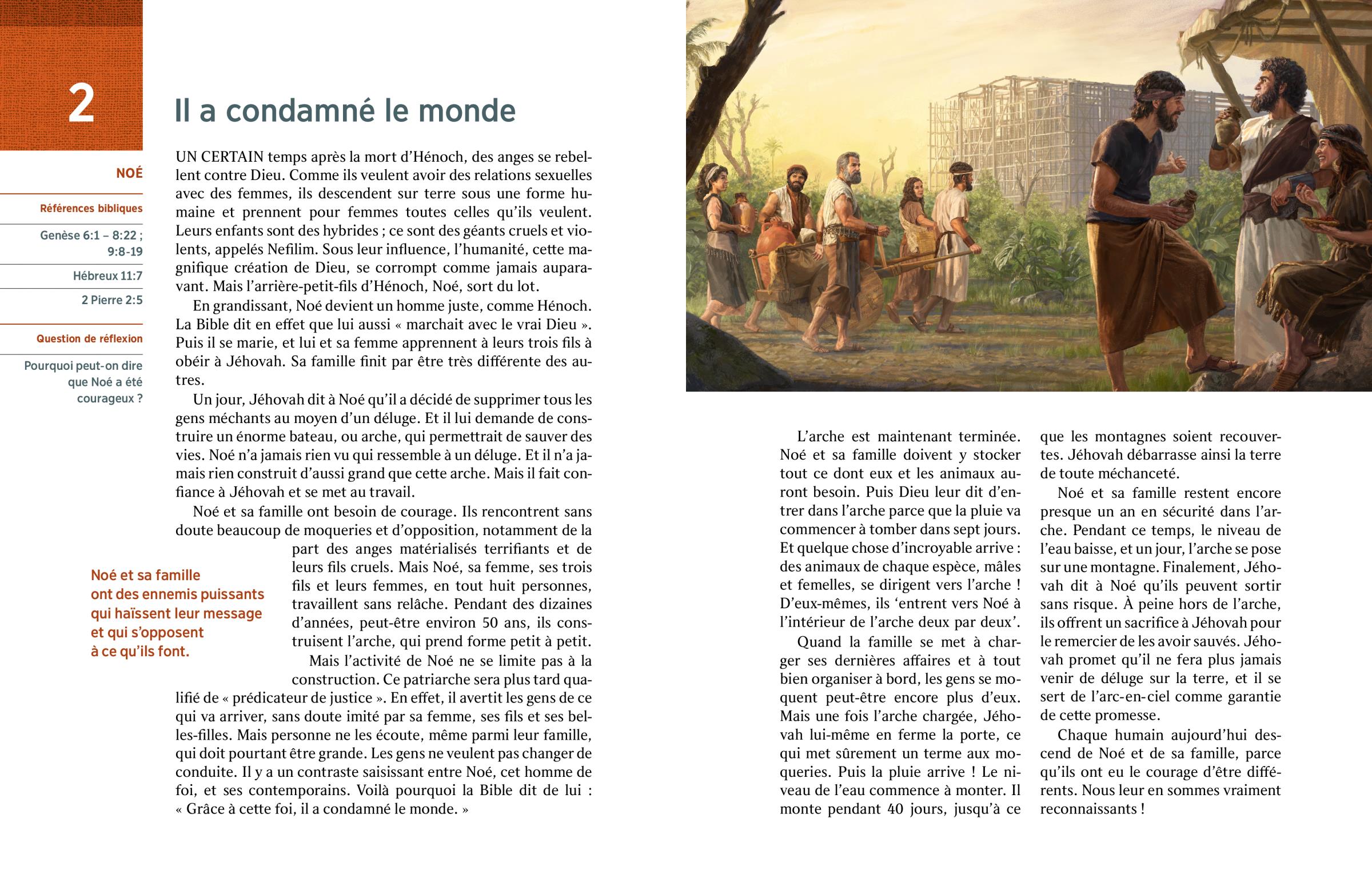 En grandissant, Noé devient un homme juste, comme Hénoch. La Bible dit en effet que lui aussi « marchait avec le vrai Dieu ». Puis il se marie, et lui et sa femme apprennent à leurs trois fils à obéir à Jéhovah. Sa famille finit par être très différente des autres.
