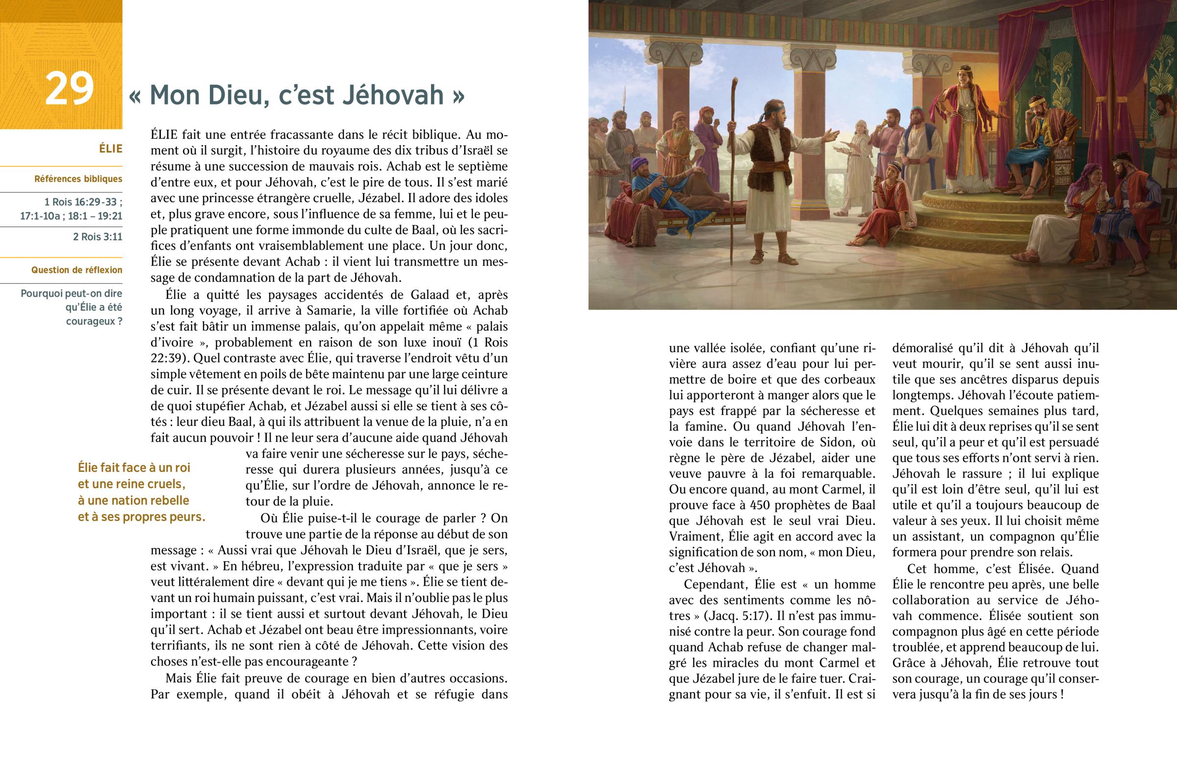 Mais Élie fait preuve de courage en bien d’autres occasions. Par exemple, quand il obéit à Jéhovah et se réfugie dans une vallée isolée, confiant qu’une rivière aura assez d’eau pour lui permettre de boire et que des corbeaux lui apporteront à manger alors que le pays est frappé par la sécheresse et la famine. Ou quand Jéhovah l’envoie dans le territoire de Sidon, où règne le père de Jézabel, aider une veuve pauvre à la foi remarquable. Ou encore quand, au mont Carmel, il prouve face à 450 prophètes de Baal que Jéhovah est le seul vrai Dieu. Vraiment, Élie agit en accord avec la signification de son nom, « mon Dieu, c’est Jéhovah ».
