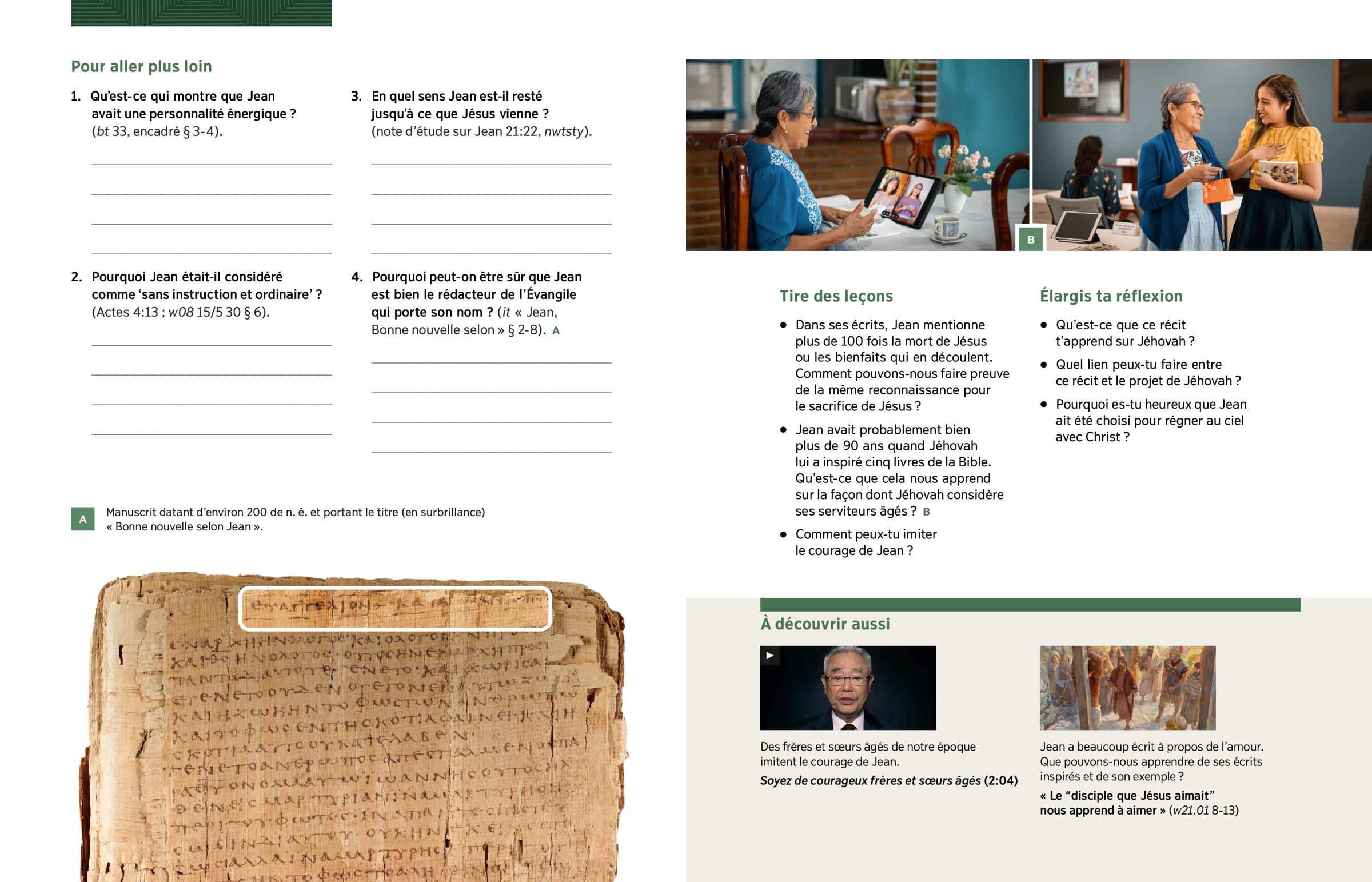 3. En quel sens Jean est-il resté jusqu’à ce que Jésus vienne ? (note d’étude sur Jean 21:22, nwtsty).