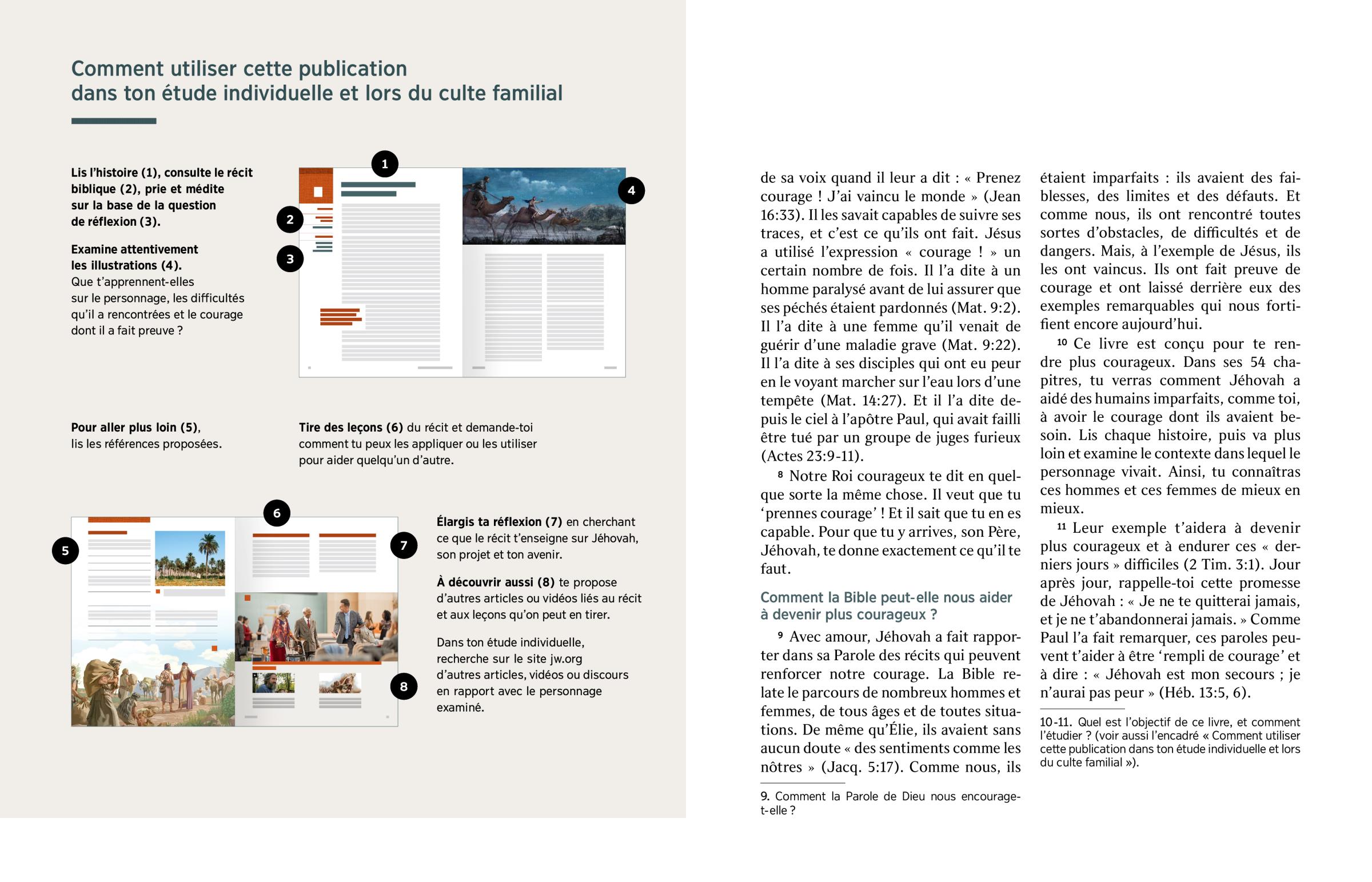 10 Ce livre est conçu pour te rendre plus courageux. Dans ses 54 chapitres, tu verras comment Jéhovah a aidé des humains imparfaits, comme toi, à avoir le courage dont ils avaient besoin. Lis chaque histoire, puis va plus loin et examine le contexte dans lequel le personnage vivait. Ainsi, tu connaîtras ces hommes et ces femmes de mieux en mieux.