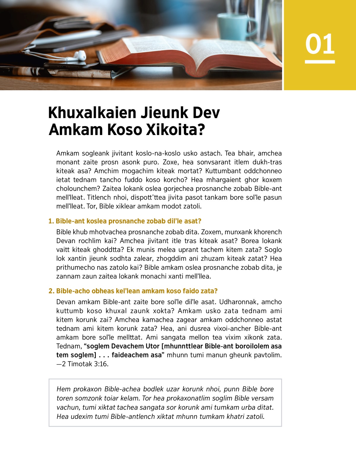 Hem prokaxon Bible-achea bodlek uzar korunk nhoi, punn Bible bore toren somzonk toiar kelam. Tor hea prokaxonatlim soglim Bible versam vachun, tumi xiktat tachea sangata sor korunk ami tumkam urba ditat. Hea udexim tumi Bible-antlench xiktat mhunn tumkam khatri zatoli.