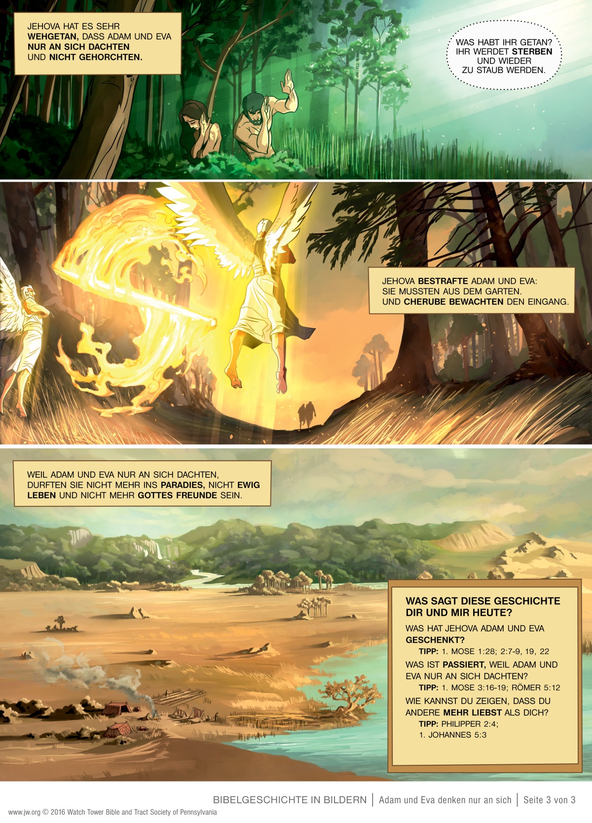 Alle Menschen müssen leiden, weil Adam und Eva bei einer wichtigen Entscheidung nur an sich dachten. Was haben sie getan?