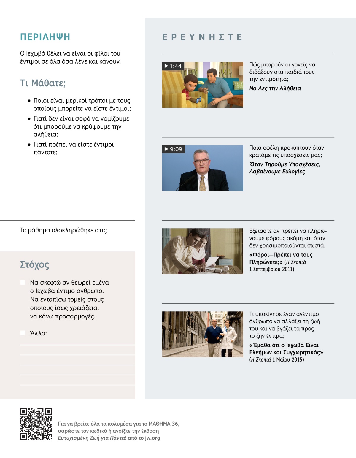 Δείτε πώς επηρεάζει η εντιμότητα τον Ιεχωβά και εσάς και μάθετε πώς μπορείτε να είστε έντιμοι και ειλικρινείς σε διάφορες καταστάσεις της ζωής.