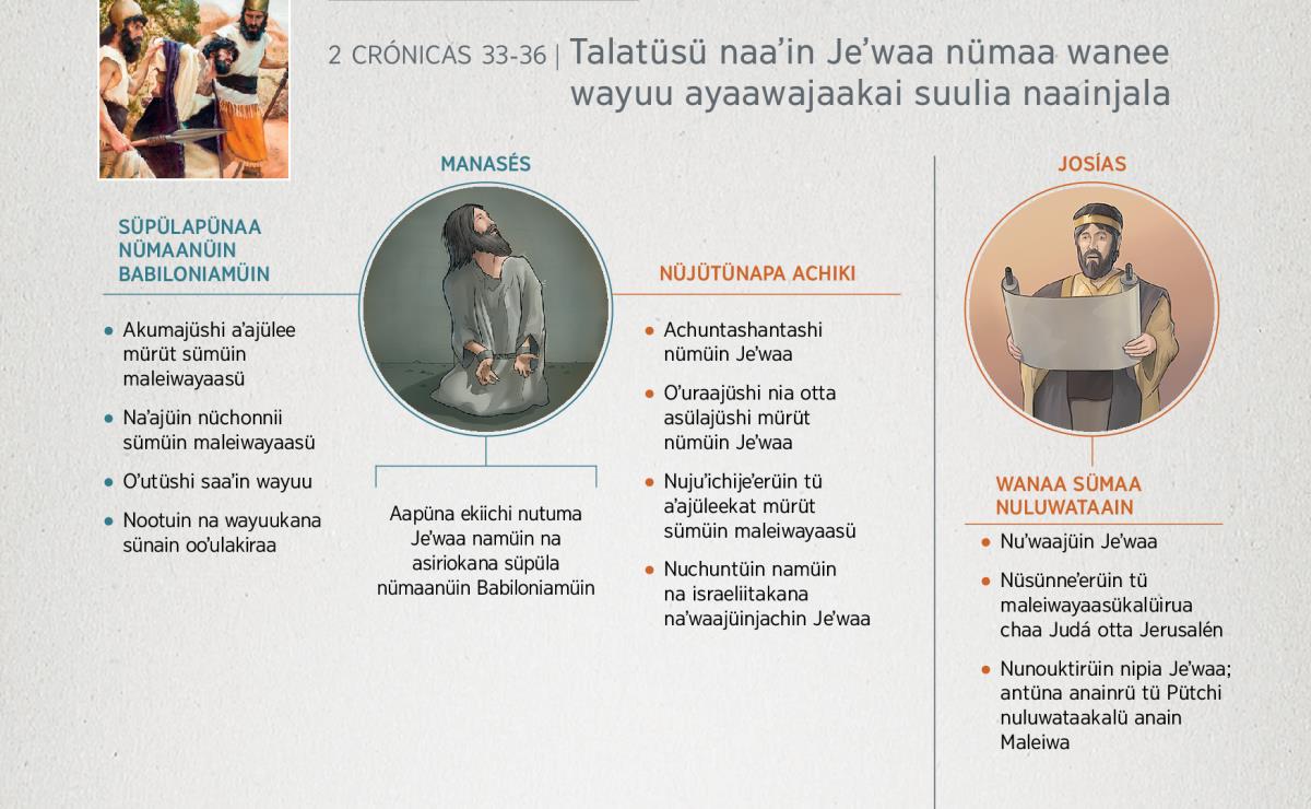 KOROLO KOJUTÜSÜ SULUʼUKA TÜ WIWÜLIAKAT | 2 CRÓNICAS 33-36