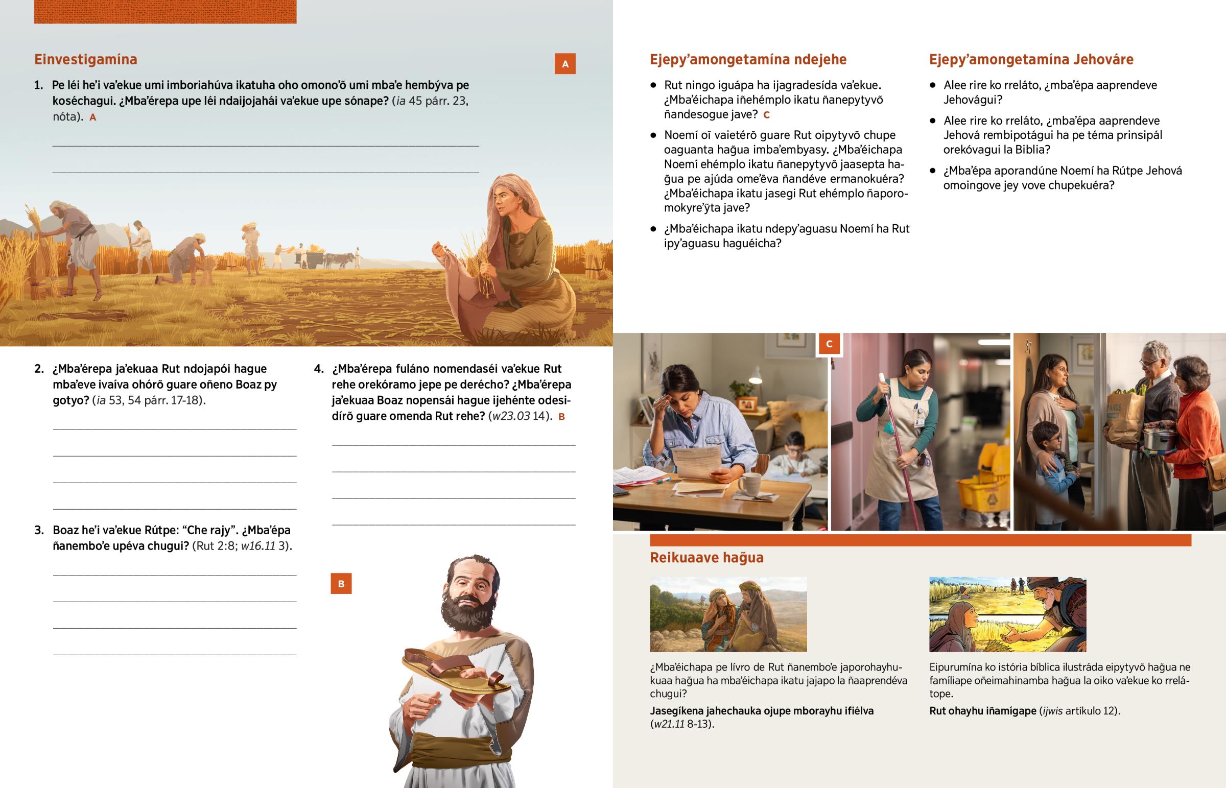 2. ¿Mbaʼérepa jaʼekuaa Rut ndojapói hague mbaʼeve ivaíva ohórõ guare oñeno Boaz py gotyo? (ia 53, 54 párr. 17-18).