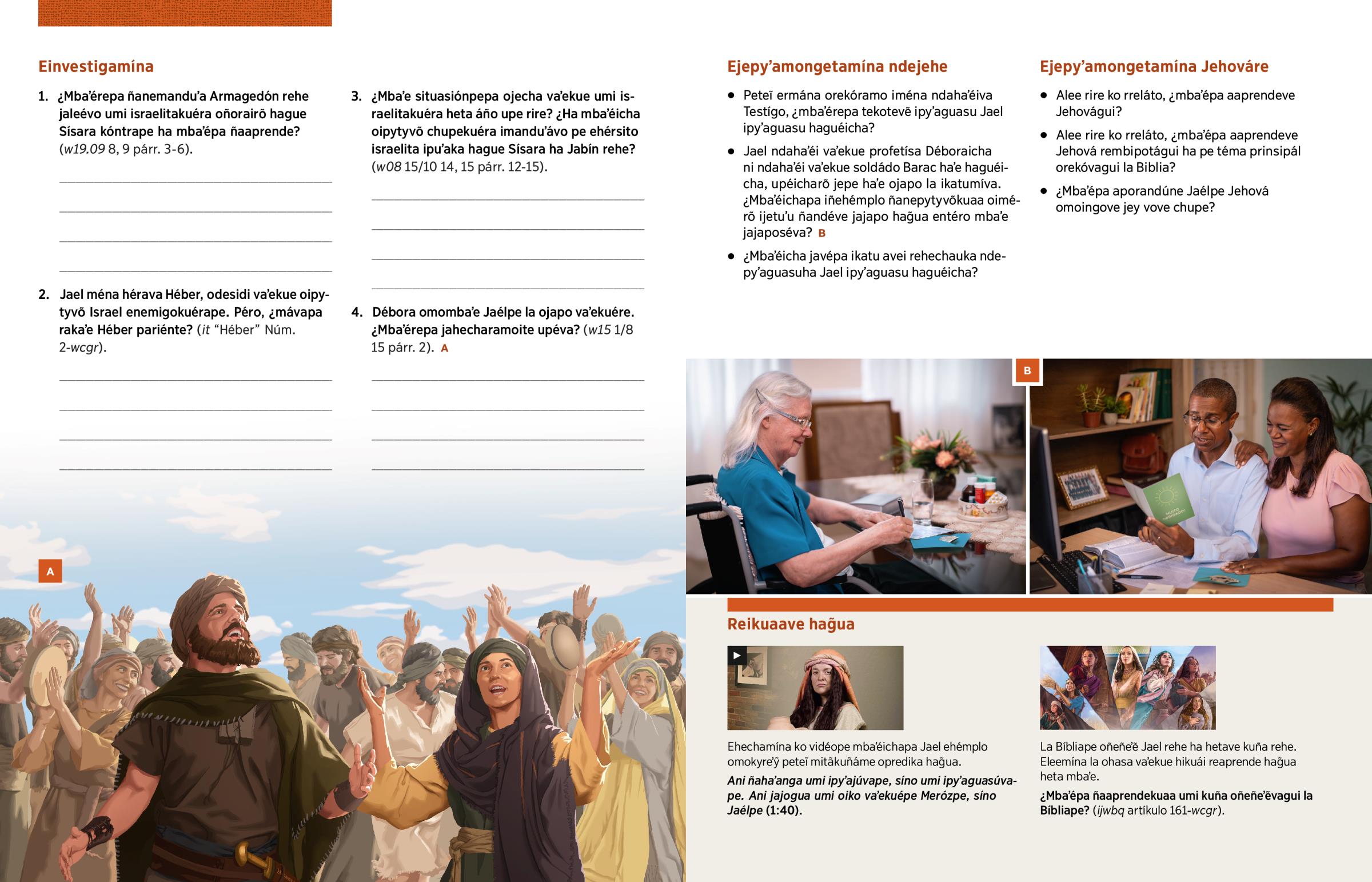 4. 4. Débora omombaʼe Jaélpe la ojapo vaʼekuére. ¿Mbaʼérepa jahecharamoite upéva? (w15 1/8 15 párr. 2). A
