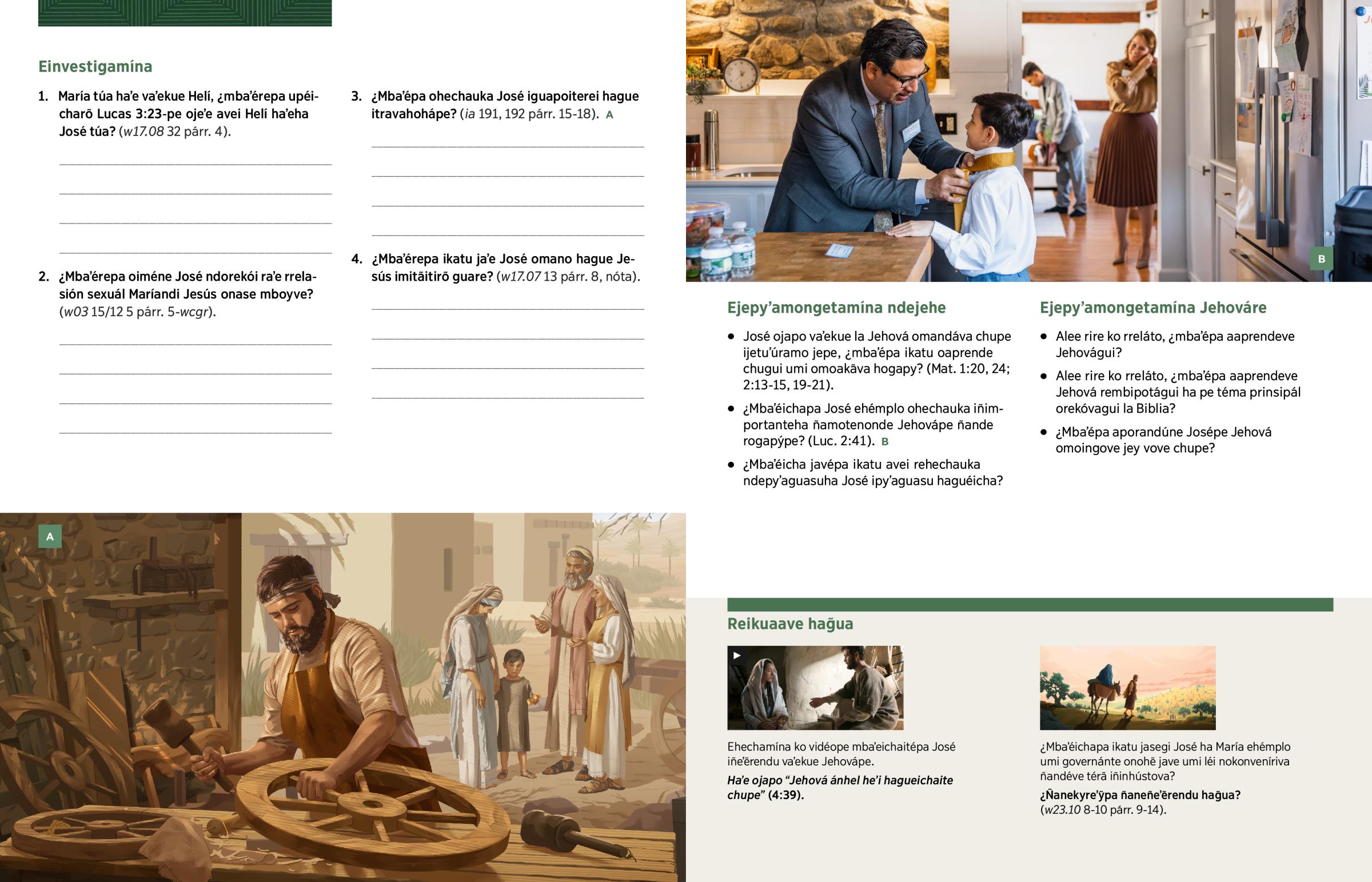 • ¿Mbaʼéichapa José ehémplo ohechauka iñimportanteha ñamotenonde Jehovápe ñande rogapýpe? (Luc. 2:41). B
