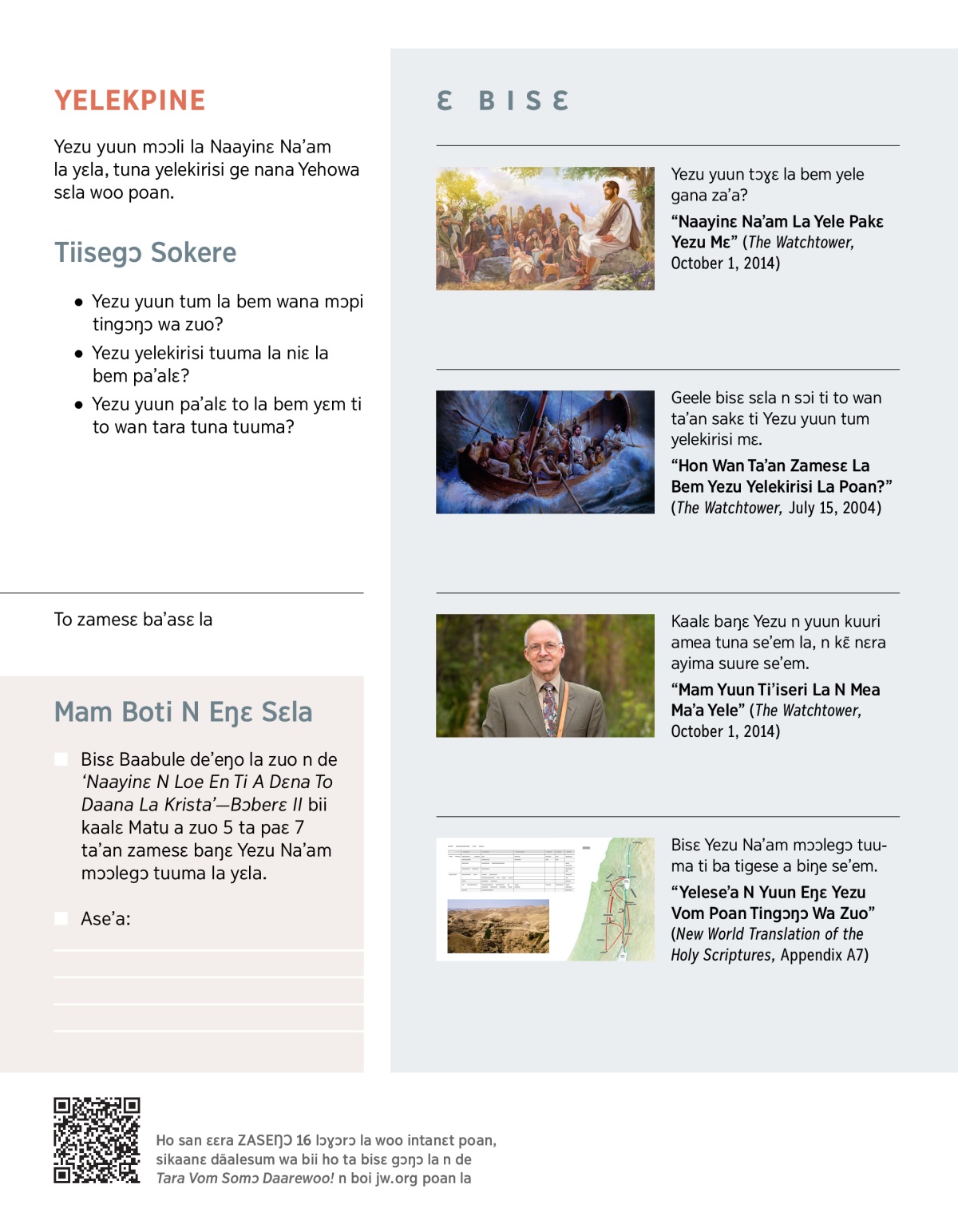 “Naayinɛ Na’am La Yele Pakɛ Yezu Mɛ” (The Watchtower, October 1, 2014)