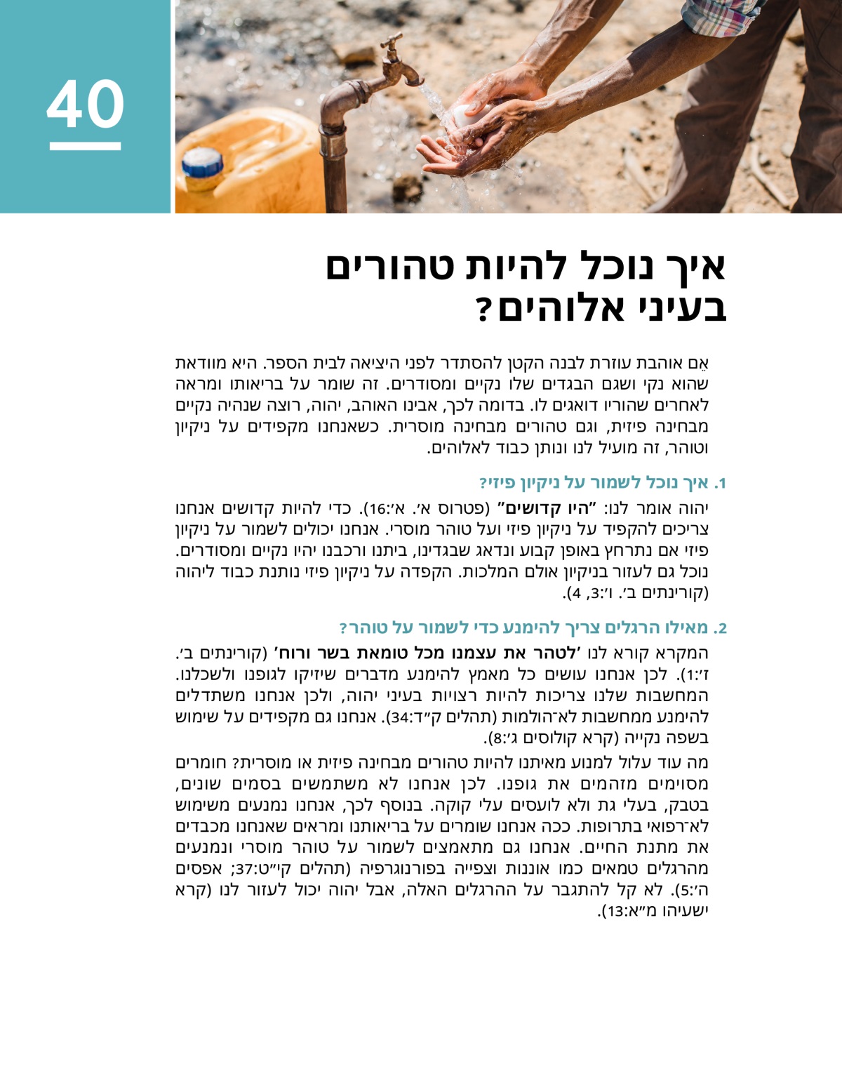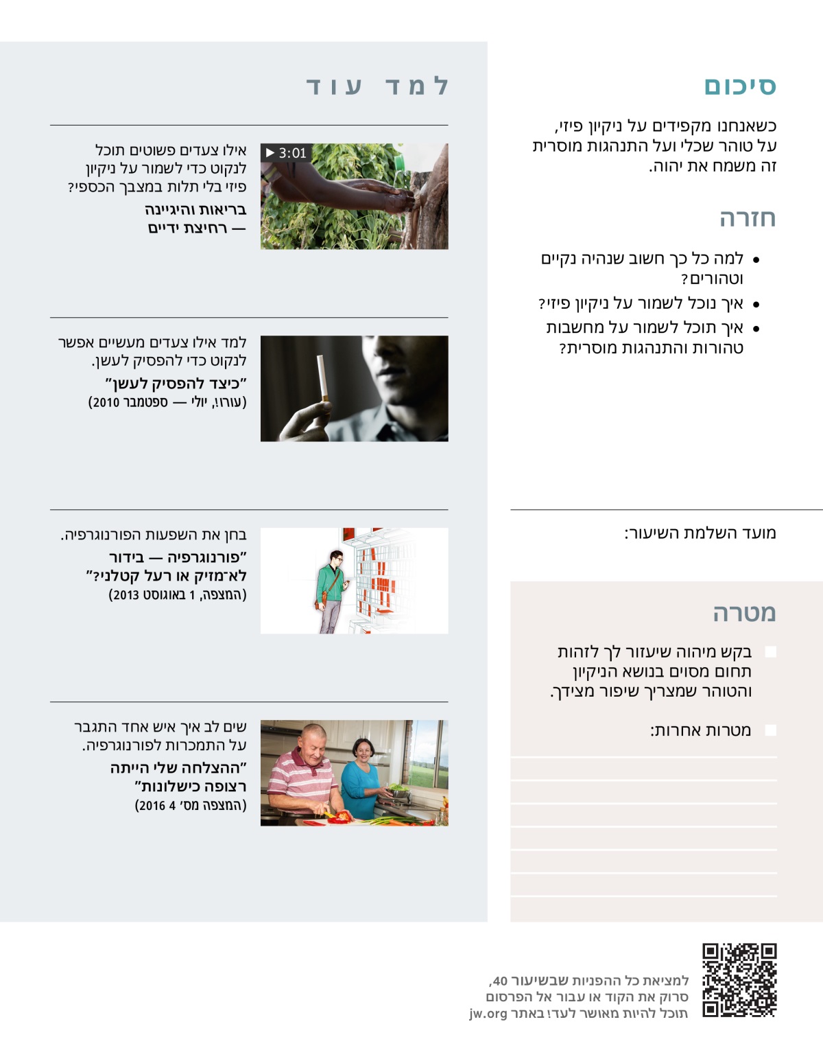 ראה למה שמירה על ניקיון פיזי נותנת כבוד ליהוה, ולמד איך להתגבר על הרגלים טמאים.