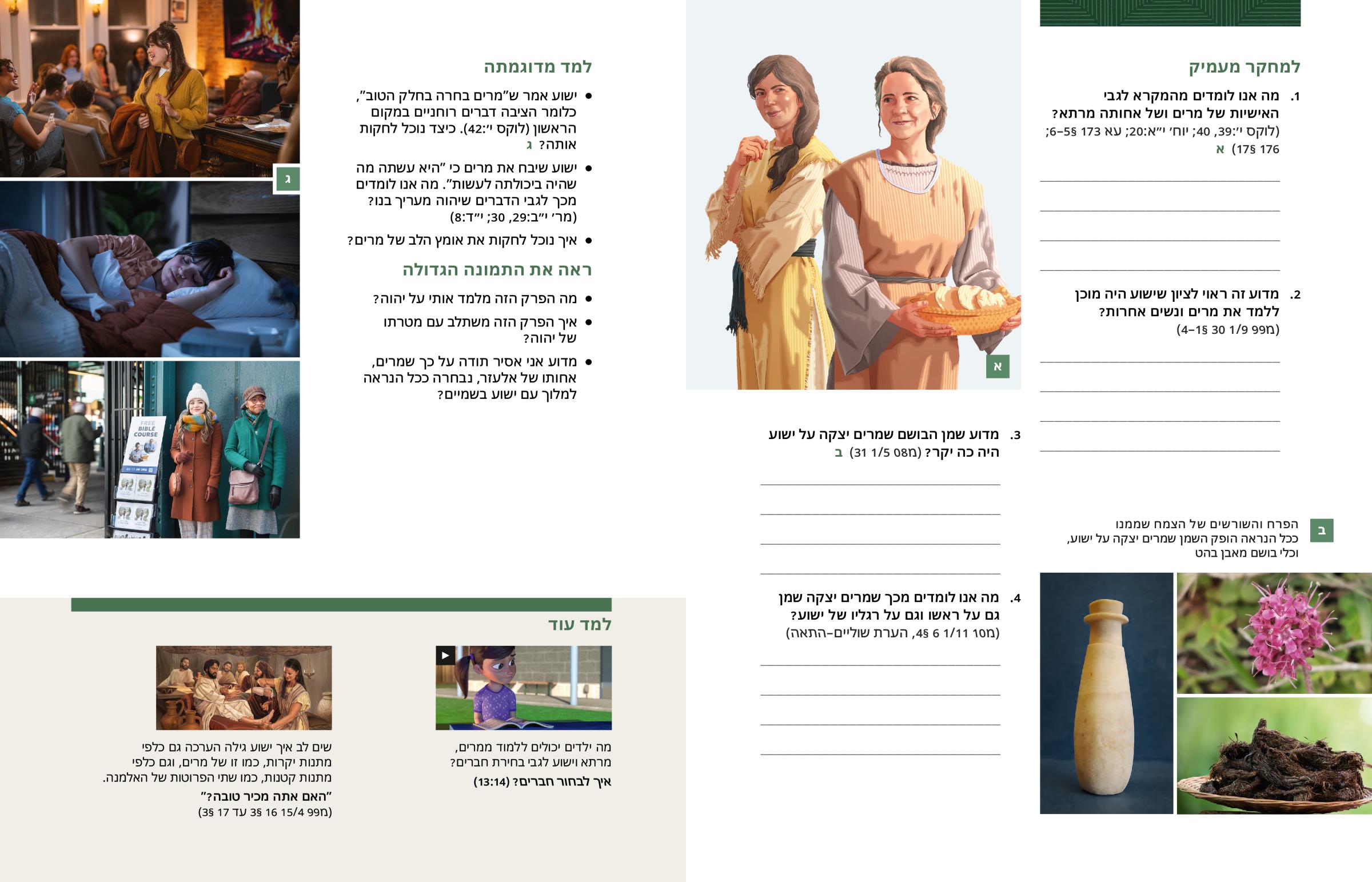 1. מה אנו לומדים מהמקרא לגבי האישיות של מרים ושל אחותה מרתא? (לוקס י׳:39, 40; יוח׳ י״א:20; עא 173 §5–6; 176 §17) א
