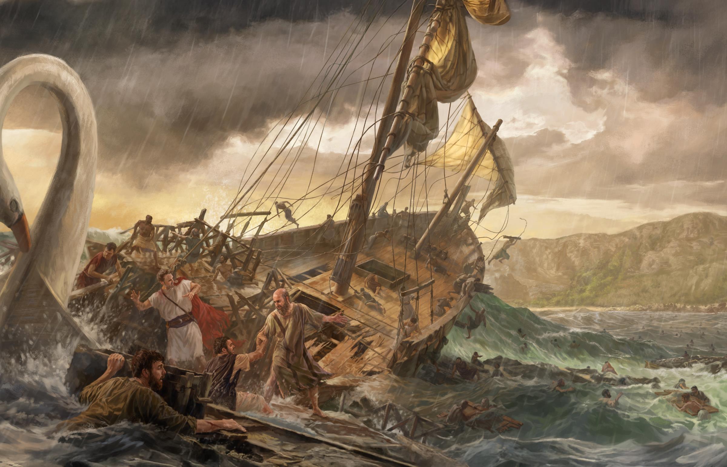 בשעת סערה עזה פאולוס הציל את חייהם של כל מי שהיו איתו על האונייה
