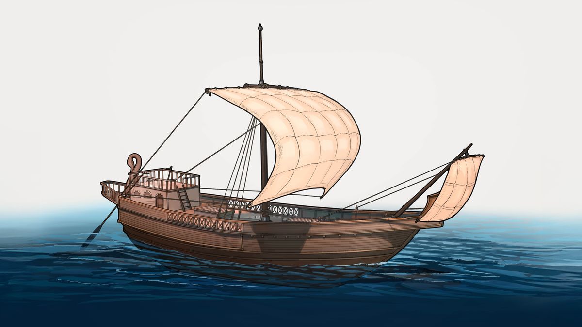 תמונה א: אוניית מסחר מהמאה הראשונה, הדומה לאונייה שממנה הפליג פאולוס ממירה