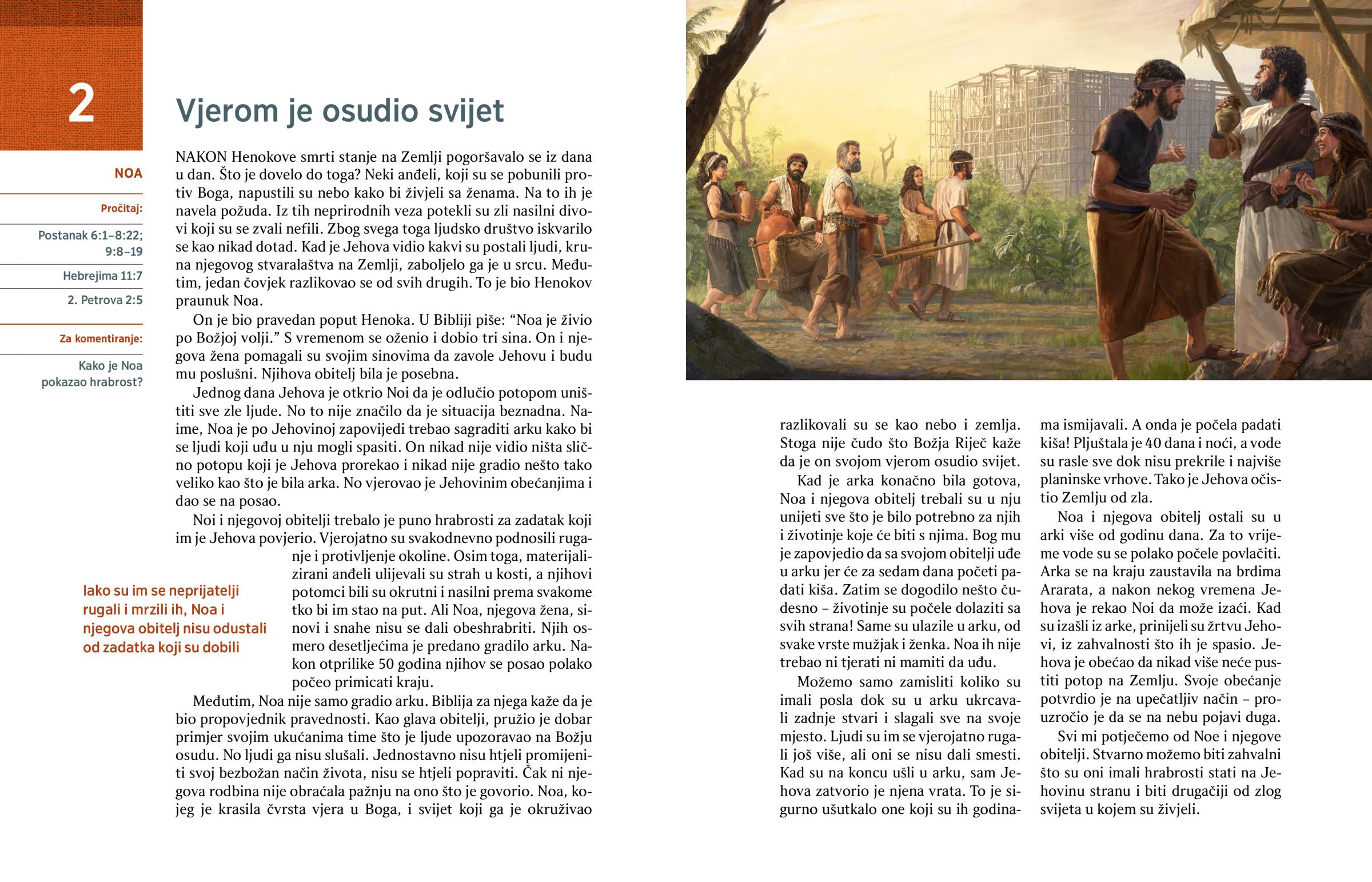 Jednog dana Jehova je otkrio Noi da je odlučio potopom uništiti sve zle ljude. No to nije značilo da je situacija beznadna. Naime, Noa je po Jehovinoj zapovijedi trebao sagraditi arku kako bi se ljudi koji uđu u nju mogli spasiti. On nikad nije vidio ništa slično potopu koji je Jehova prorekao i nikad nije gradio nešto tako veliko kao što je bila arka. No vjerovao je Jehovinim obećanjima i dao se na posao.