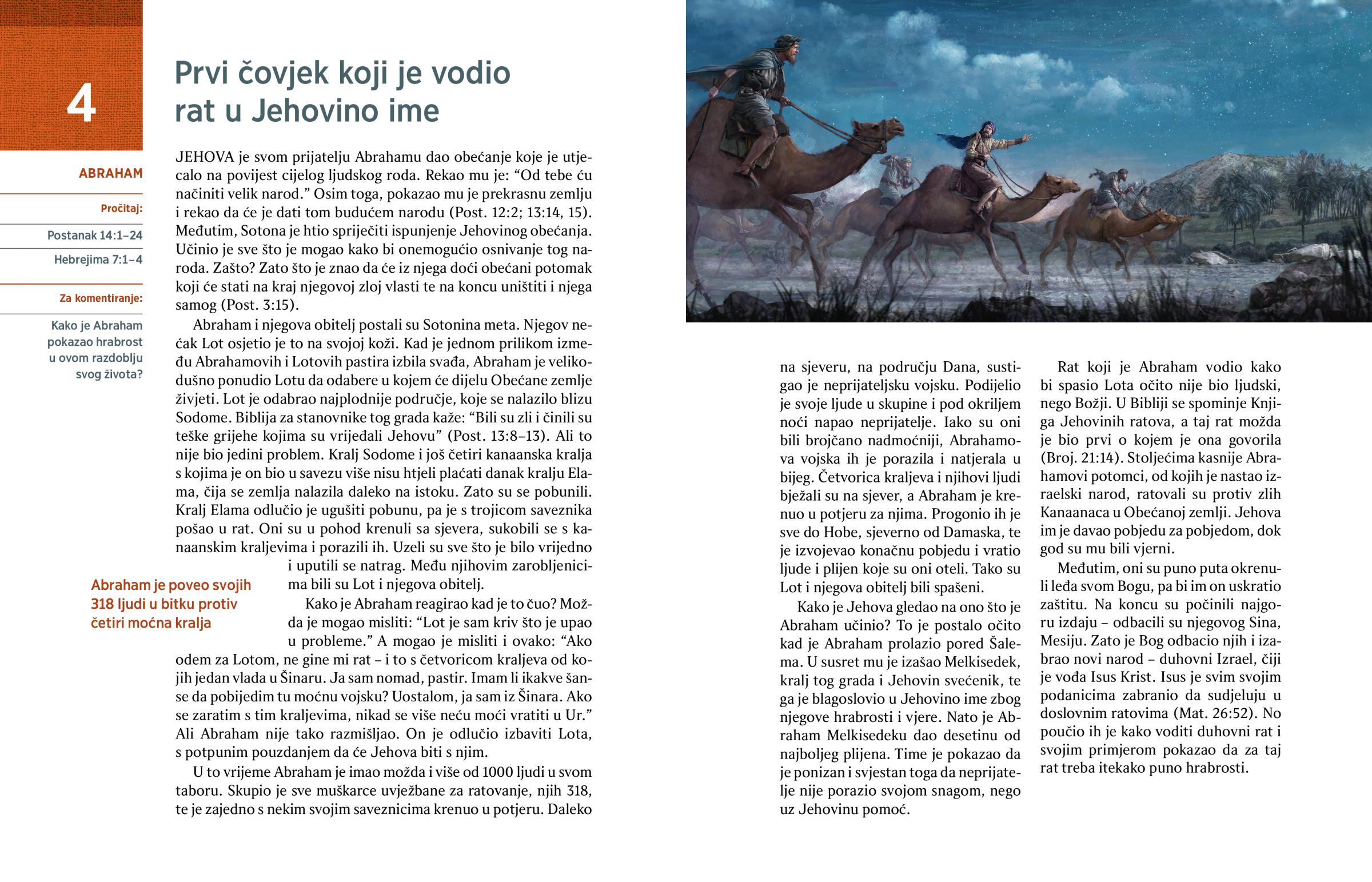 Kako je Abraham reagirao kad je to čuo? Možda je mogao misliti: “Lot je sam kriv što je upao u probleme.” A mogao je misliti i ovako: “Ako odem za Lotom, ne gine mi rat – i to s četvoricom kraljeva od kojih jedan vlada u Šinaru. Ja sam nomad, pastir. Imam li ikakve šanse da pobijedim tu moćnu vojsku? Uostalom, ja sam iz Šinara. Ako se zaratim s tim kraljevima, nikad se više neću moći vratiti u Ur.” Ali Abraham nije tako razmišljao. On je odlučio izbaviti Lota, s potpunim pouzdanjem da će Jehova biti s njim.