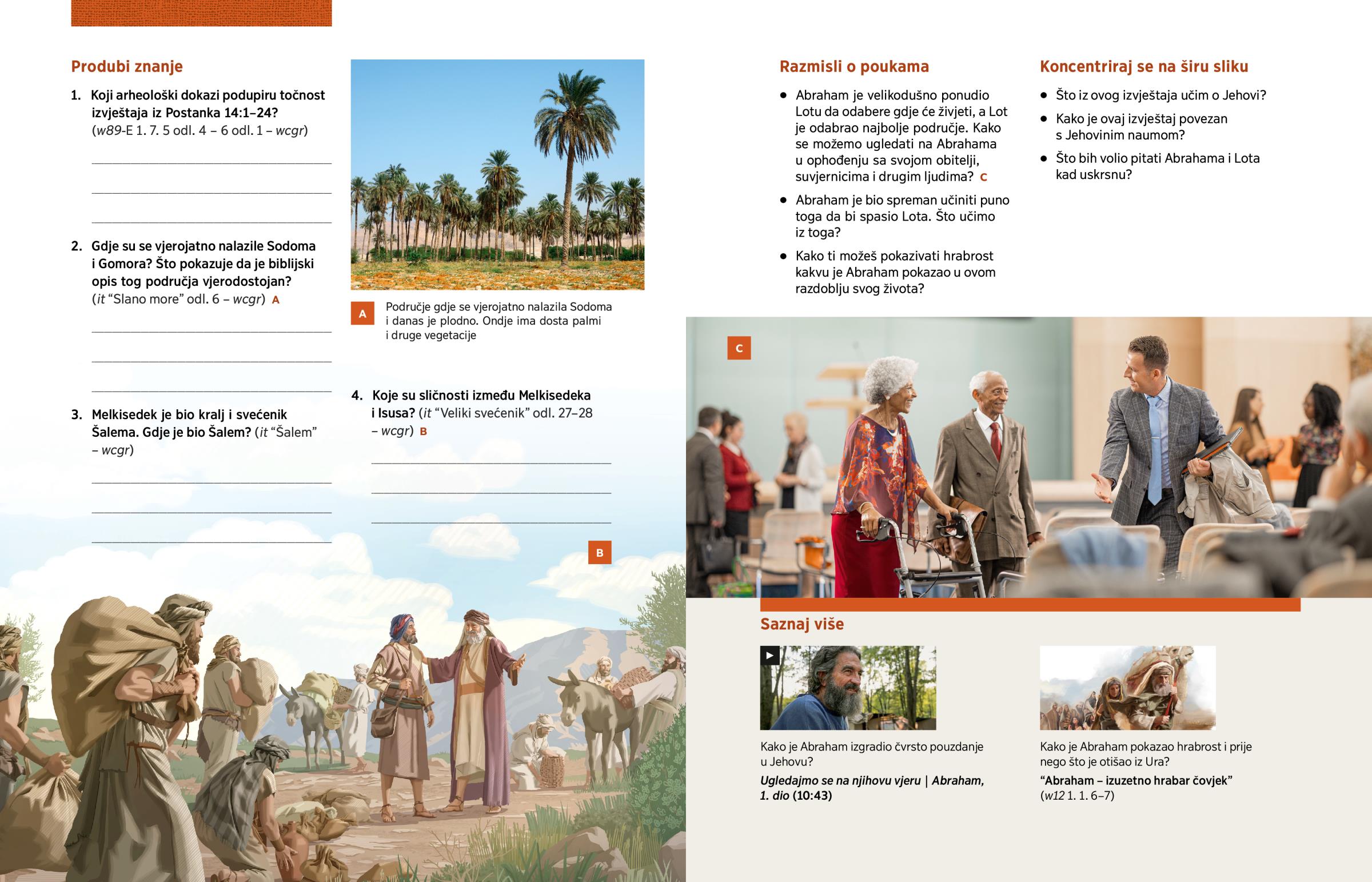 Abraham je velikodušno ponudio Lotu da odabere gdje će živjeti, a Lot je odabrao najbolje područje. Kako se možemo ugledati na Abrahama u ophođenju sa svojom obitelji, suvjernicima i drugim ljudima? C