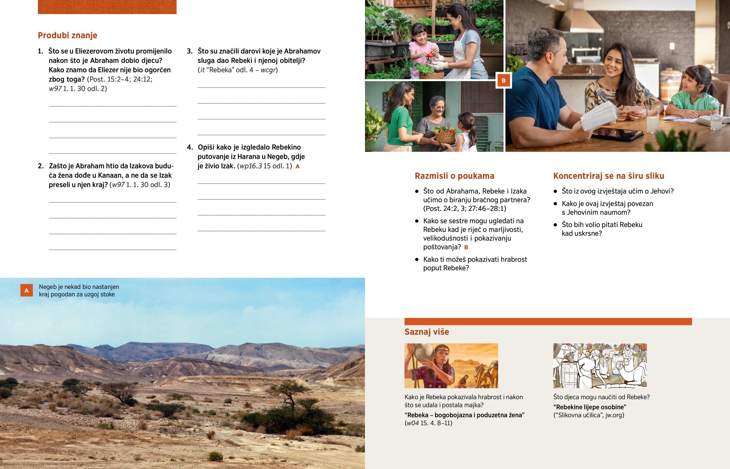 • Što od Abrahama, Rebeke i Izaka učimo o biranju bračnog partnera? (Post. 24:2, 3; 27:46–28:1)