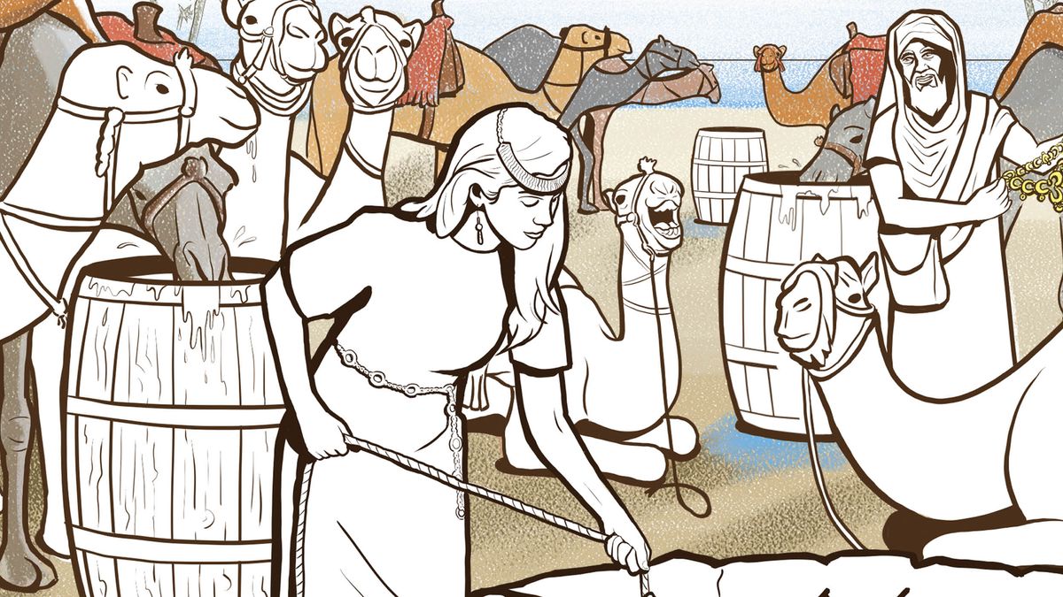 Ali otišla je i korak dalje – rekla je da će zahvatiti vode i za njegovih deset deva. Išla je do bunara i vraćala se s vrčem punim vode, sve dok mu nije napojila deve. Cijelo to vrijeme on ju je zadivljeno promatrao. A onda ju je upitao: “Kaži mi čija si kći! Ima li u kući tvog oca mjesta za nas da prenoćimo?” Ona mu je gostoljubivo ponudila prenoćište i rekla da ima mjesta za njih i dovoljno hrane za njihove životinje.