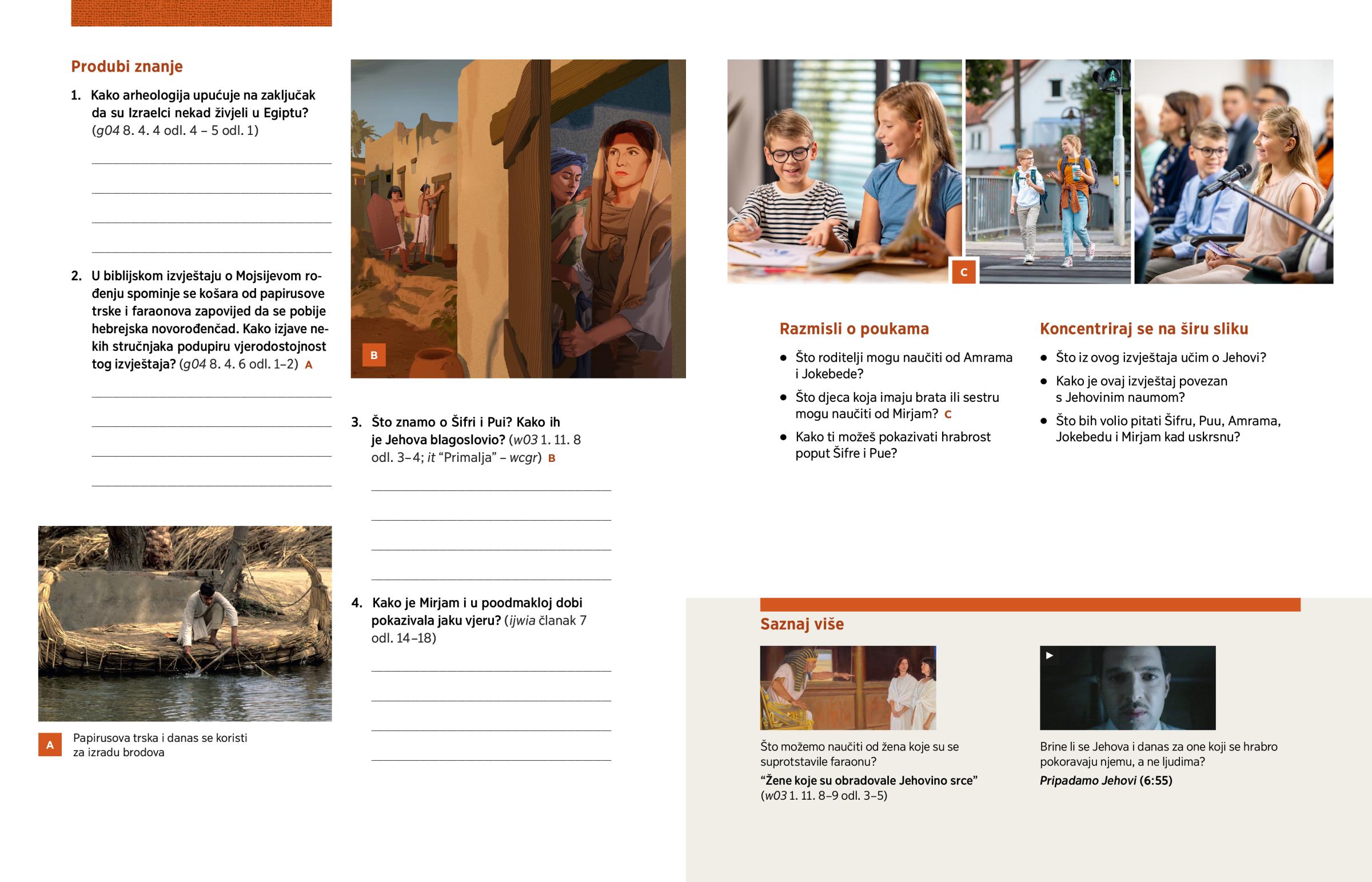 2. U biblijskom izvještaju o Mojsijevom rođenju spominje se košara od papirusove trske i faraonova zapovijed da se pobije hebrejska novorođenčad. Kako izjave nekih stručnjaka podupiru vjerodostojnost tog izvještaja? (g04 8. 4. 6 odl. 1–2) A