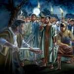Li avanse kote tòch yo ak lanp yo klere a epi li mande: “Ki moun n ap chèche?” Moun nan foul la ki vin arete l yo reponn li: “Jezi, moun Nazarèt la.” Avèk kouraj, Jezi di yo: “Se mwen menm.” (Jan 18:4, 5). Mesye yo sezi, epi yo tonbe atè.