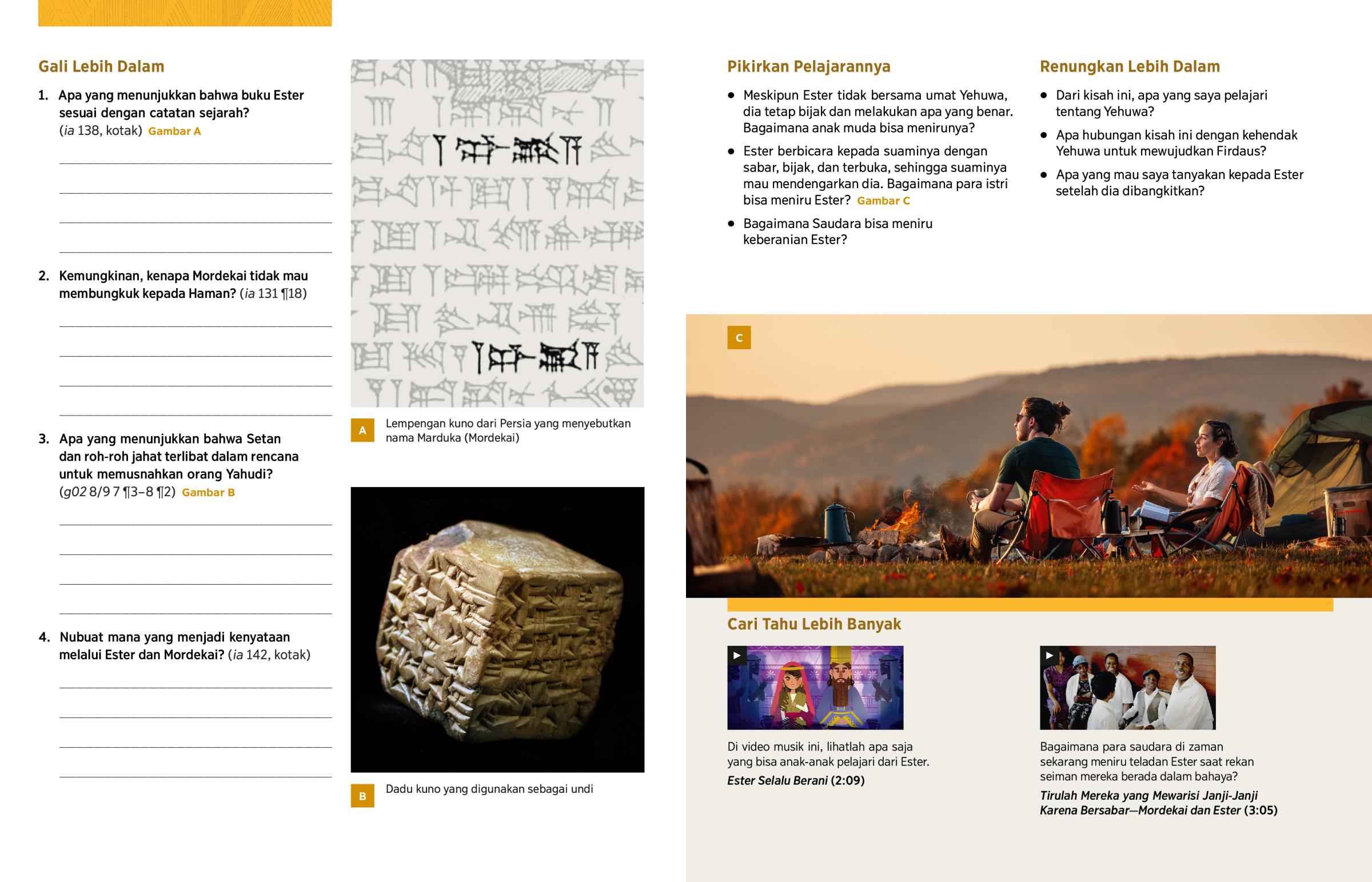 • Ester berbicara kepada suaminya dengan sabar, bijak, dan terbuka, sehingga suaminya mau mendengarkan dia. Bagaimana para istri bisa meniru Ester? Gambar C