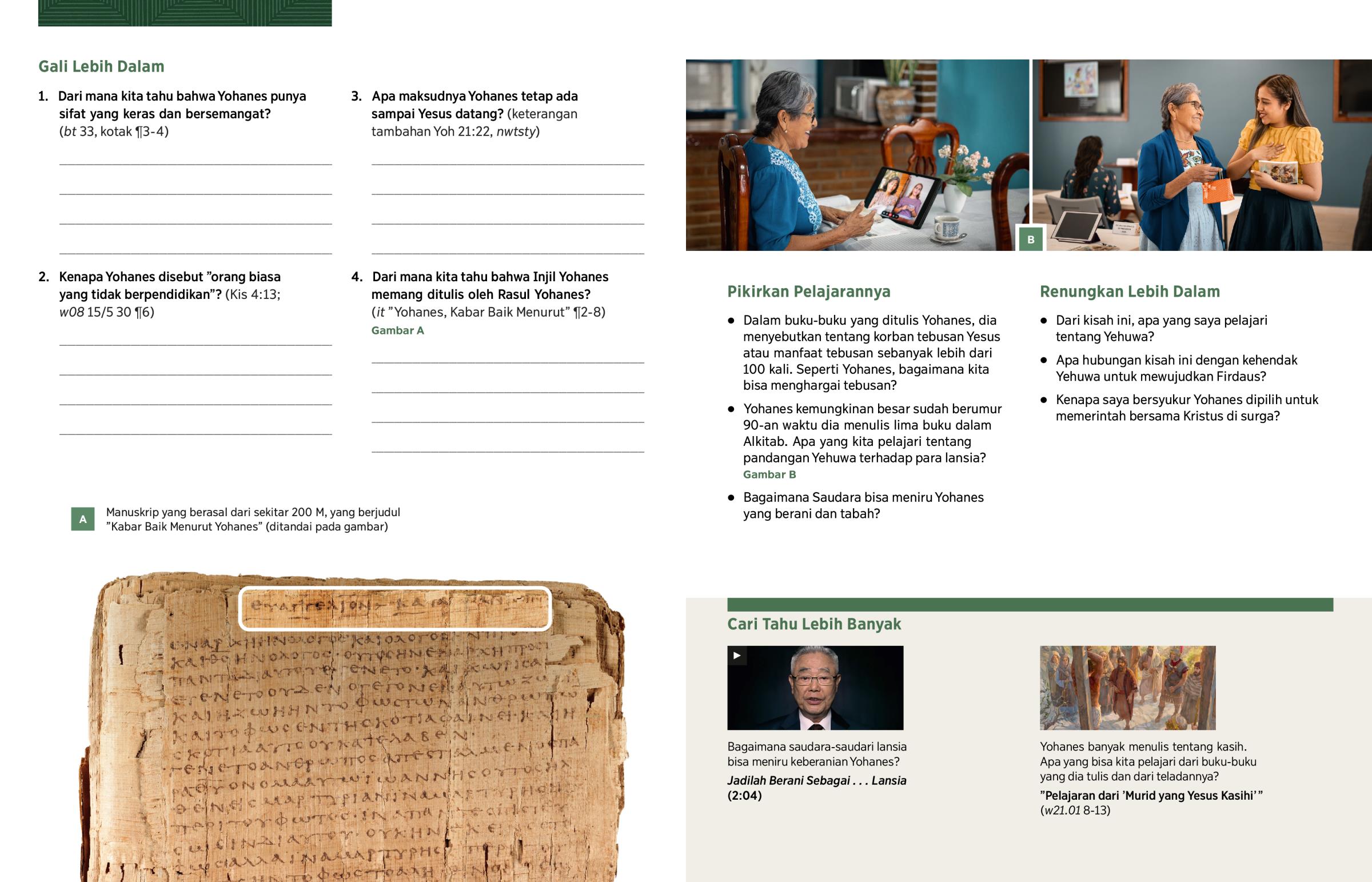 1. Dari mana kita tahu bahwa Yohanes punya sifat yang keras dan bersemangat? (bt 33, kotak ¶3-4)