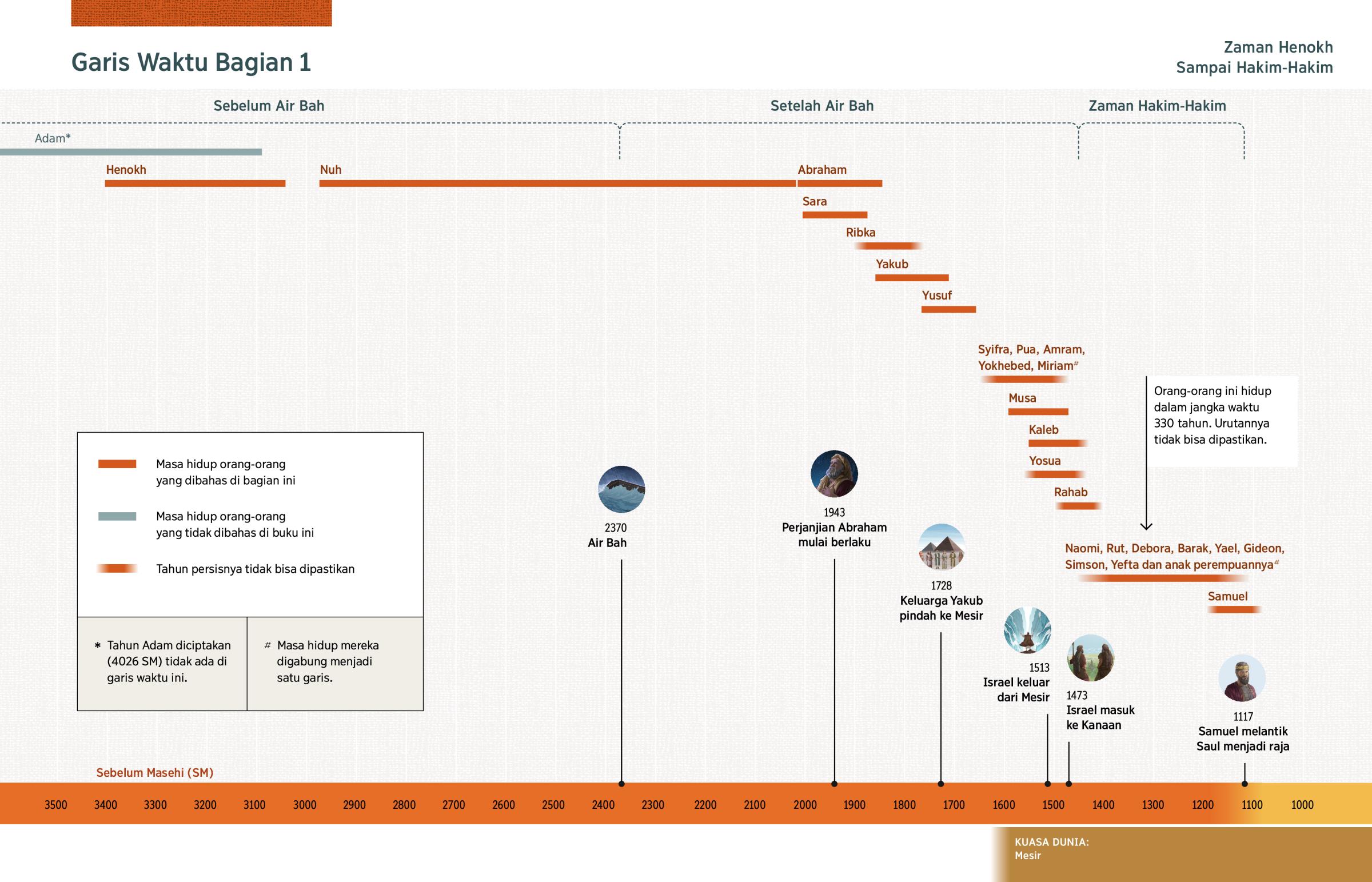 b Orang-orang ini hidup dalam jangka waktu 330 tahun. Urutannya tidak bisa dipastikan.