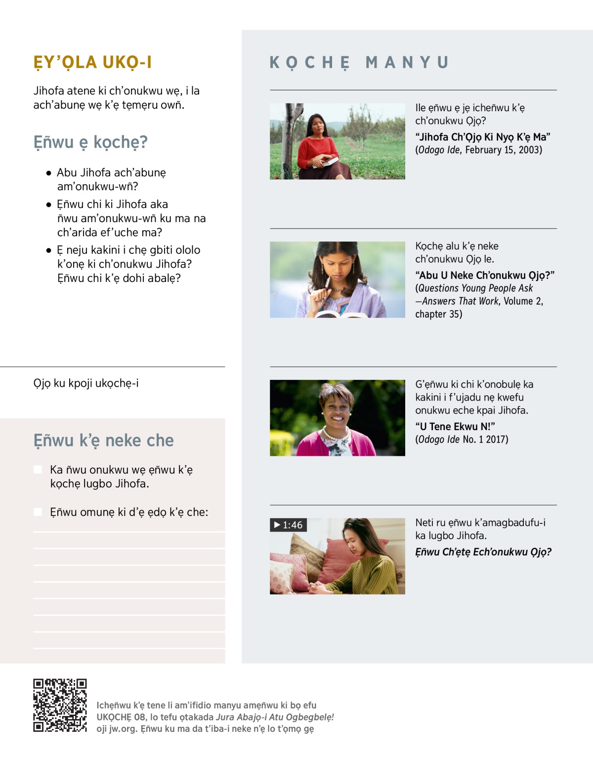 G’ẹñwu ki chi k’onobulẹ ka kakini i f’ujadu nẹ kwefu onukwu eche kpai Jihofa.