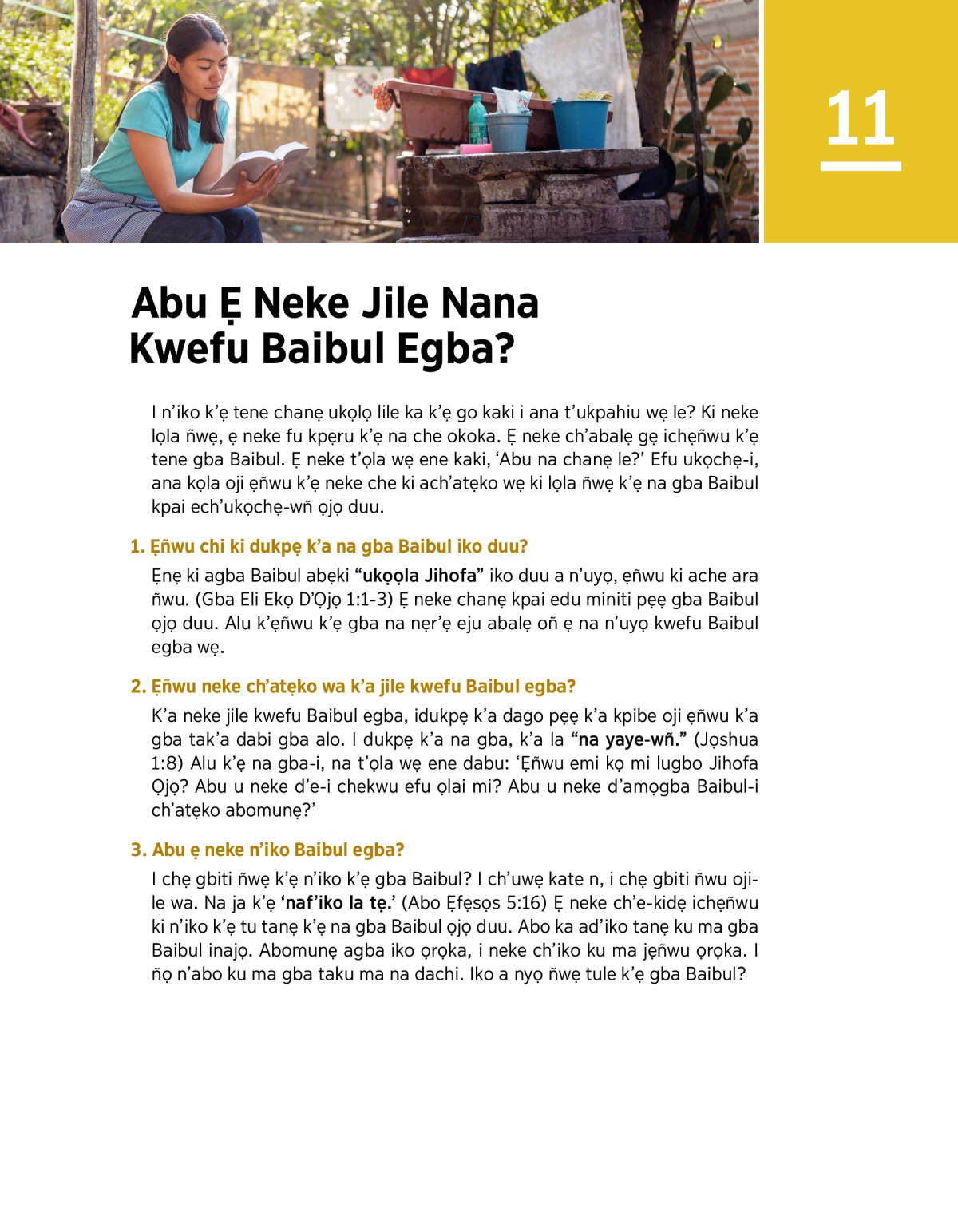“Abu Baibul Neke Ch’atẹko Mi Le?—Ukpẹ 1: Kọchẹ Ẹñwu ki Defu Baibul” (I dẹ jw.org)