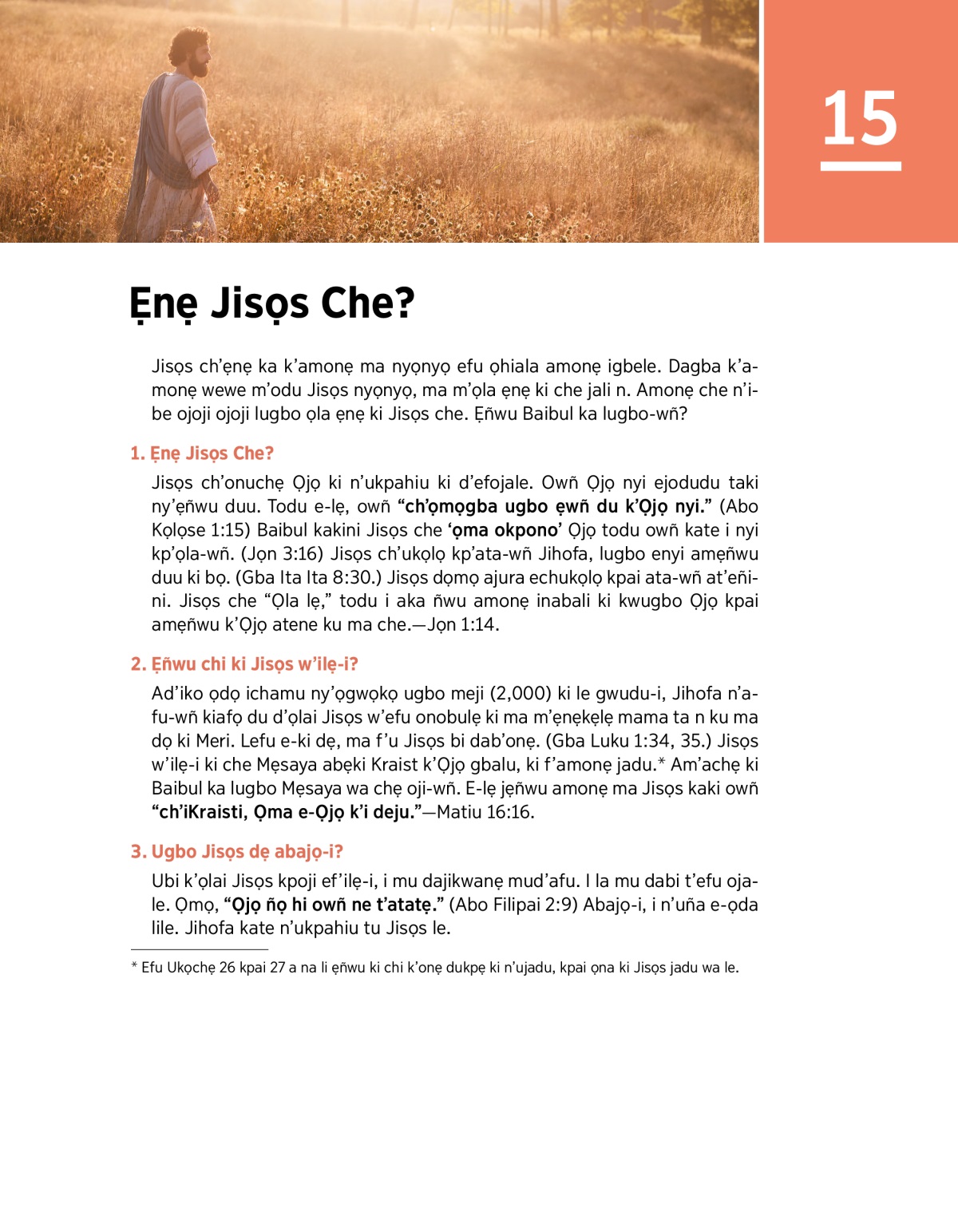 Am’oji Baibul ki d’ọganẹ-i ajẹñwu wa ma ẹñwu ki d’agbade Jihofa kpai Jisọs. Gba okoke am’oji Baibul-i, ubilẹ mẹ ch’oluka oji am’ene-i.