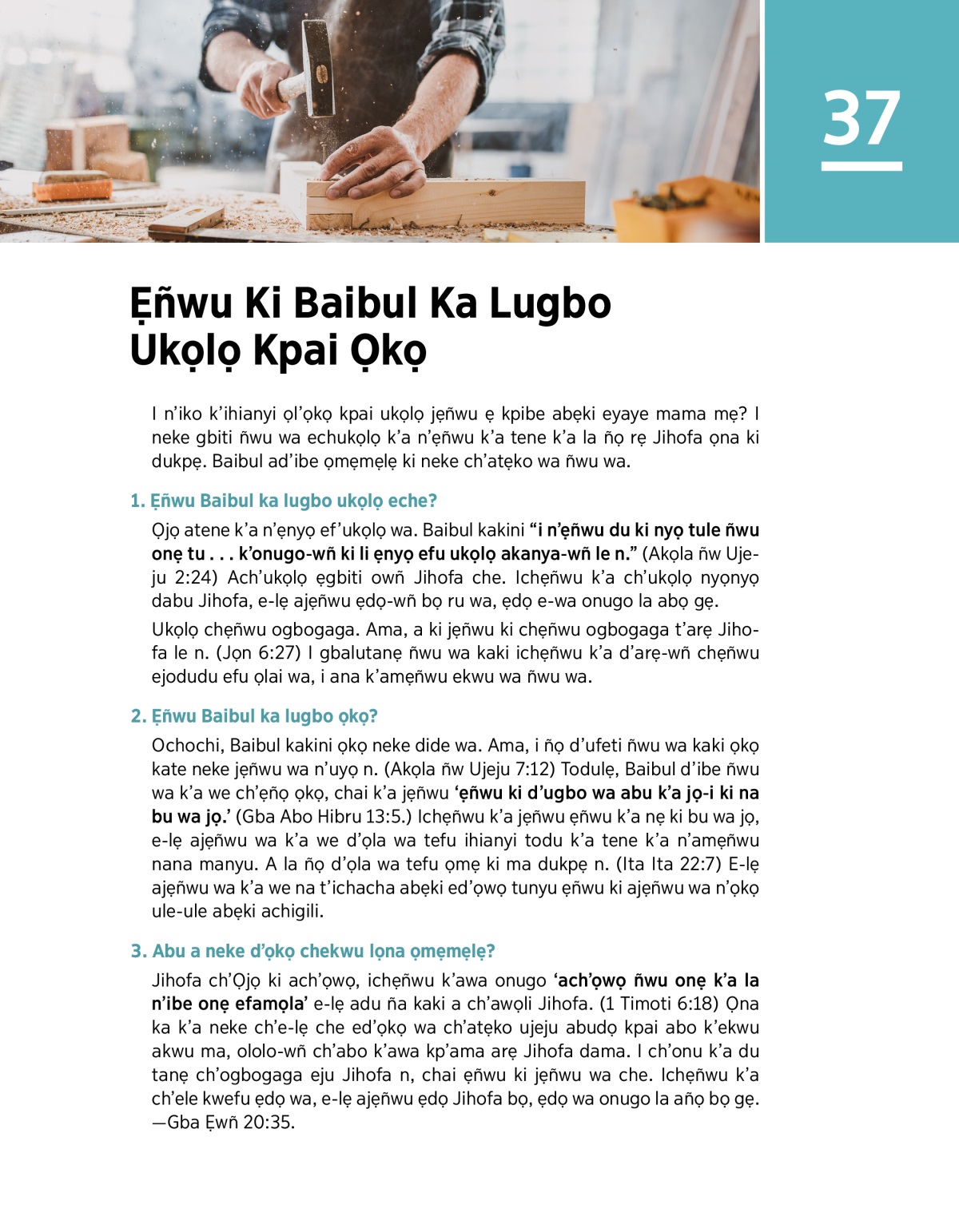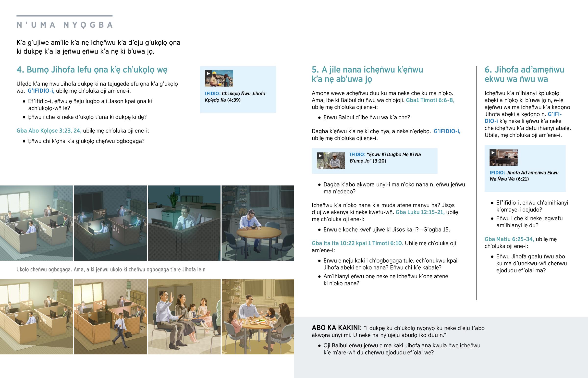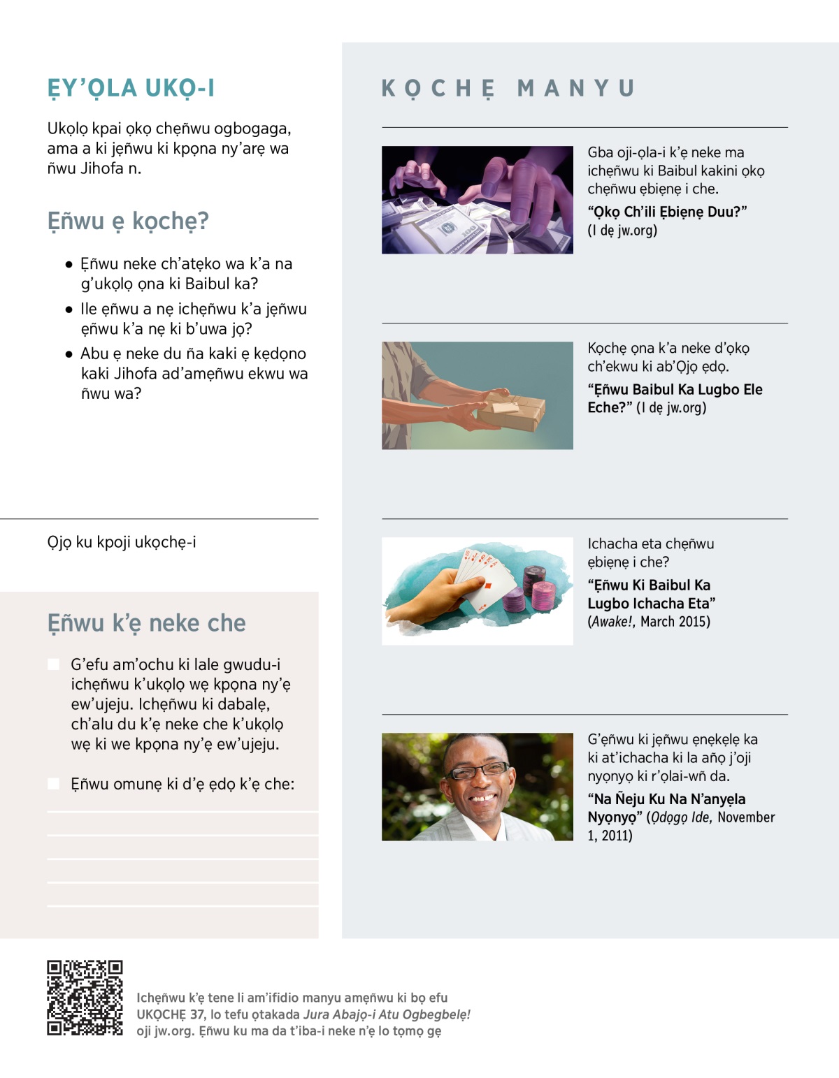 Ichẹñwu k’a n’ihianyi kp’ukọlọ abẹki a n’ọkọ ki b’uwa jọ n, e-lẹ ajẹñwu wa ma ichẹñwu k’a kẹdọno Jihofa abẹki a kẹdọno n. G’IFIDIO-i k’ẹ neke li ẹñwu k’a neke che ichẹñwu k’a defu ihianyi abalẹ. Ubilẹ, mẹ ch’oluka oji am’ene-i.