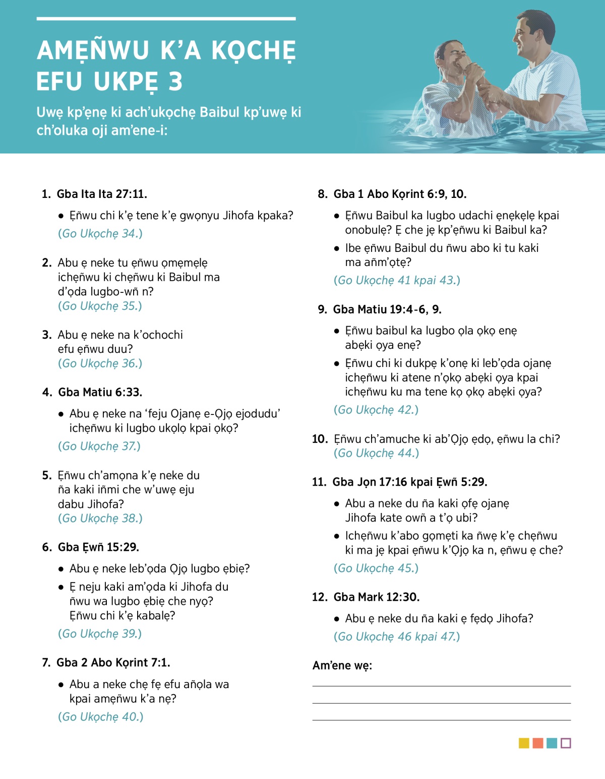 - Abu ẹ neke tu ẹñwu ọmẹmẹlẹ ichẹñwu ki chẹñwu ki Baibul ma d’ọda lugbo-wñ n? - (Go Ukọchẹ 35.)