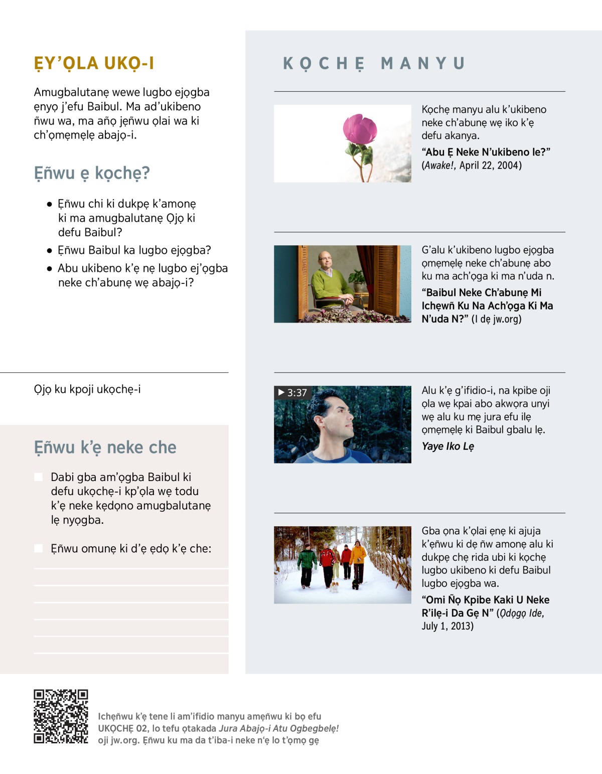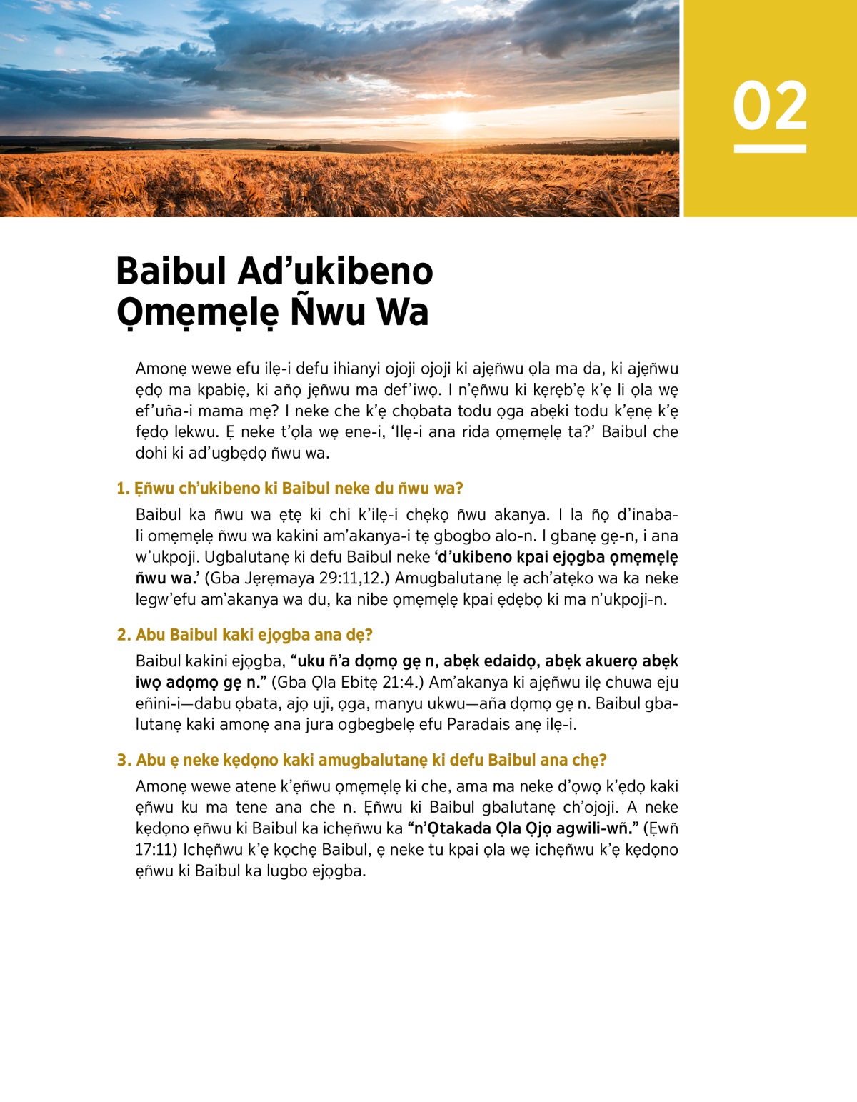 Amugbalutanẹ wewe lugbo ejọgba ẹnyọ j’efu Baibul. Ma ad’ukibeno ñwu wa, ma añọ jẹñwu ọlai wa ki ch’ọmẹmẹlẹ abajọ-i.