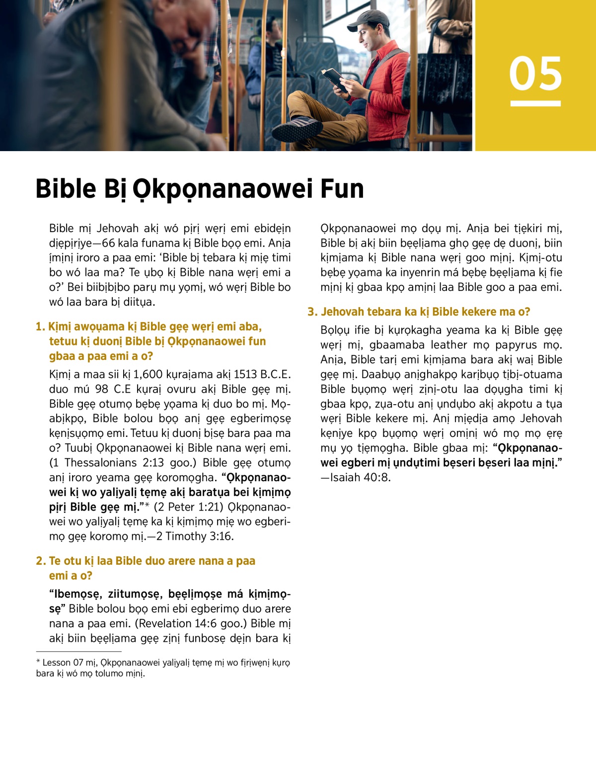 1. Kịmị awọụama kị Bible gẹẹ wẹrị emi aba, tetuu kị duonị Bible bị Ọkpọnanaowei fun gbaa a paa emi a o?