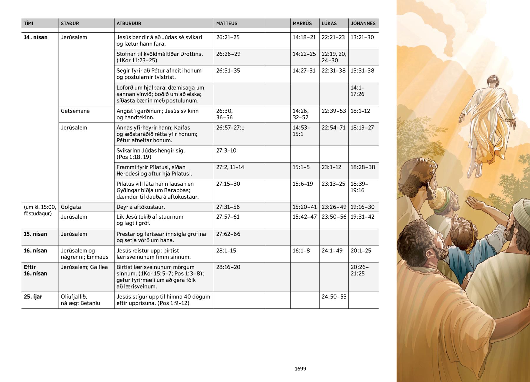 Birtist lærisveinunum mörgum sinnum. (1Kor 15:5–7; Pos 1:3–8); gefur fyrirmæli um að gera fólk að lærisveinum. |
