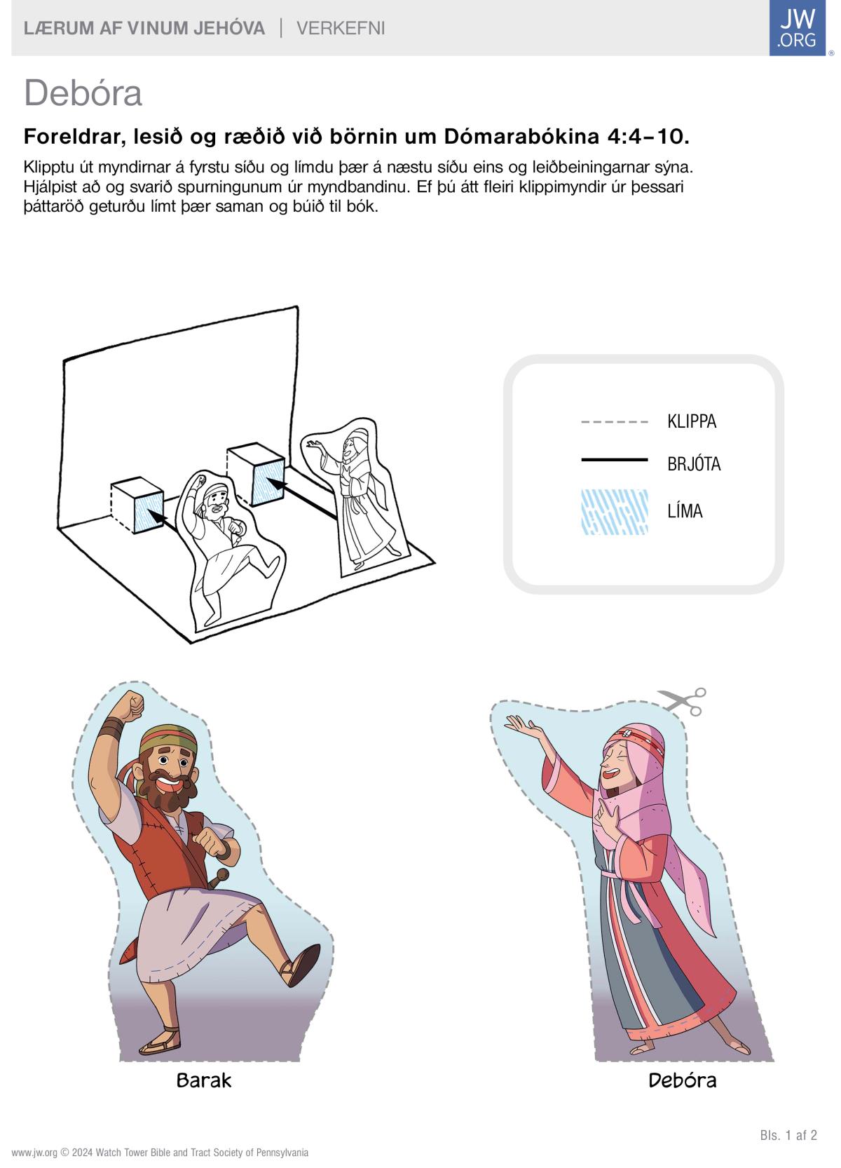 Prentaðu út verkefnið og lærðu af Debóru – vini Jehóva.