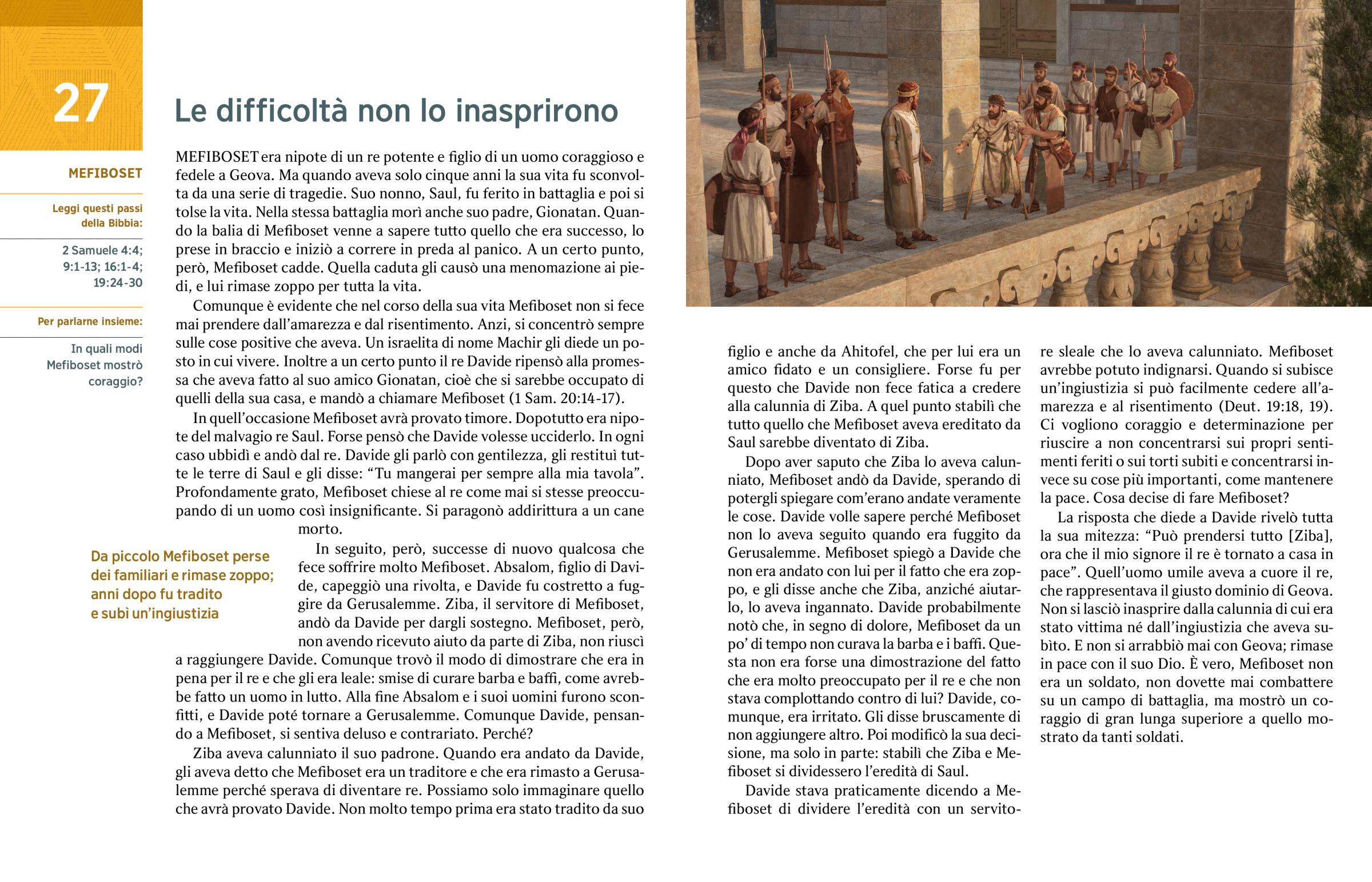 3. 3. Perché cercare di diventare re al posto di Davide sarebbe stato impensabile per un uomo come Mefiboset? (w02 15/2 14 par. 11, nt.) Immagine B