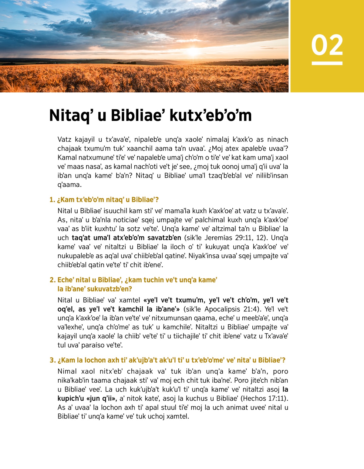 2. Echeʼ nital u Bibliaeʼ, ¿kam tuchin veʼt unqʼa kameʼ la ibʼaneʼ sukuvatzbʼen?
