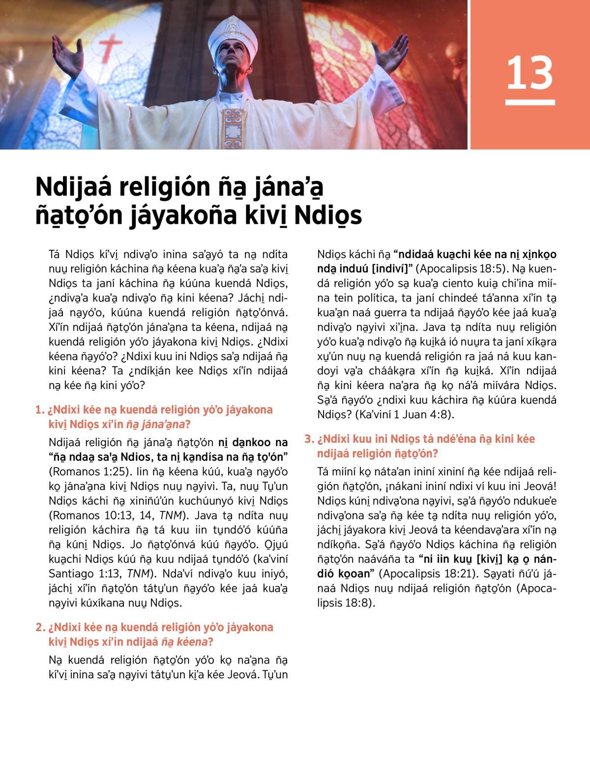 Iin ta̱ jutu̱ ni̱sanakani kuáchi̱ inira saʼa̱ religión ra. Jo ña̱yóʼo ko̱ ni̱sajíña nuu̱ra ña̱ kati̱ʼara ña̱ ndaa̱ saʼa̱ Ndio̱s.