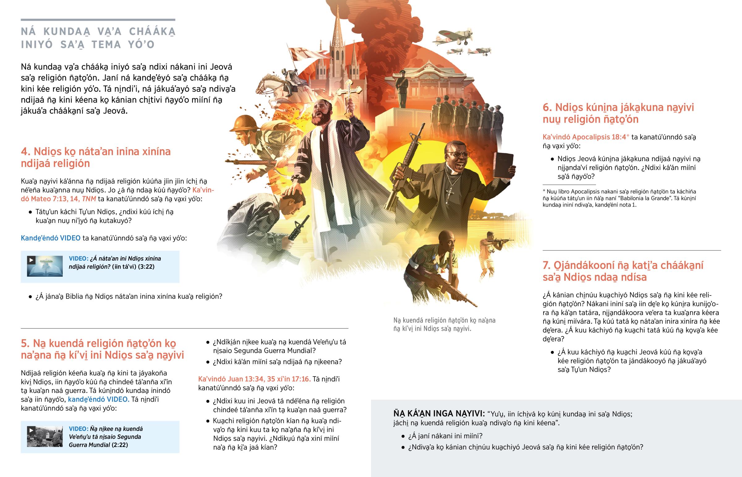 Ndijaá religión kéeña kuaʼa̱ ña̱ kini ta jáyakoña kivi̱ Ndio̱s, iin ña̱yóʼo kúú ña̱ chindeé táʼanña xíʼín ta̱ kuaʼa̱n naá guerra. Tá kúni̱ndó kundaa̱ inindó saʼa̱ iin ña̱yóʼo, kande̱ʼéndó VIDEO. Tá ni̱ndiʼi kanatúʼúnndó saʼa̱ ña̱ va̱xi yóʼo: