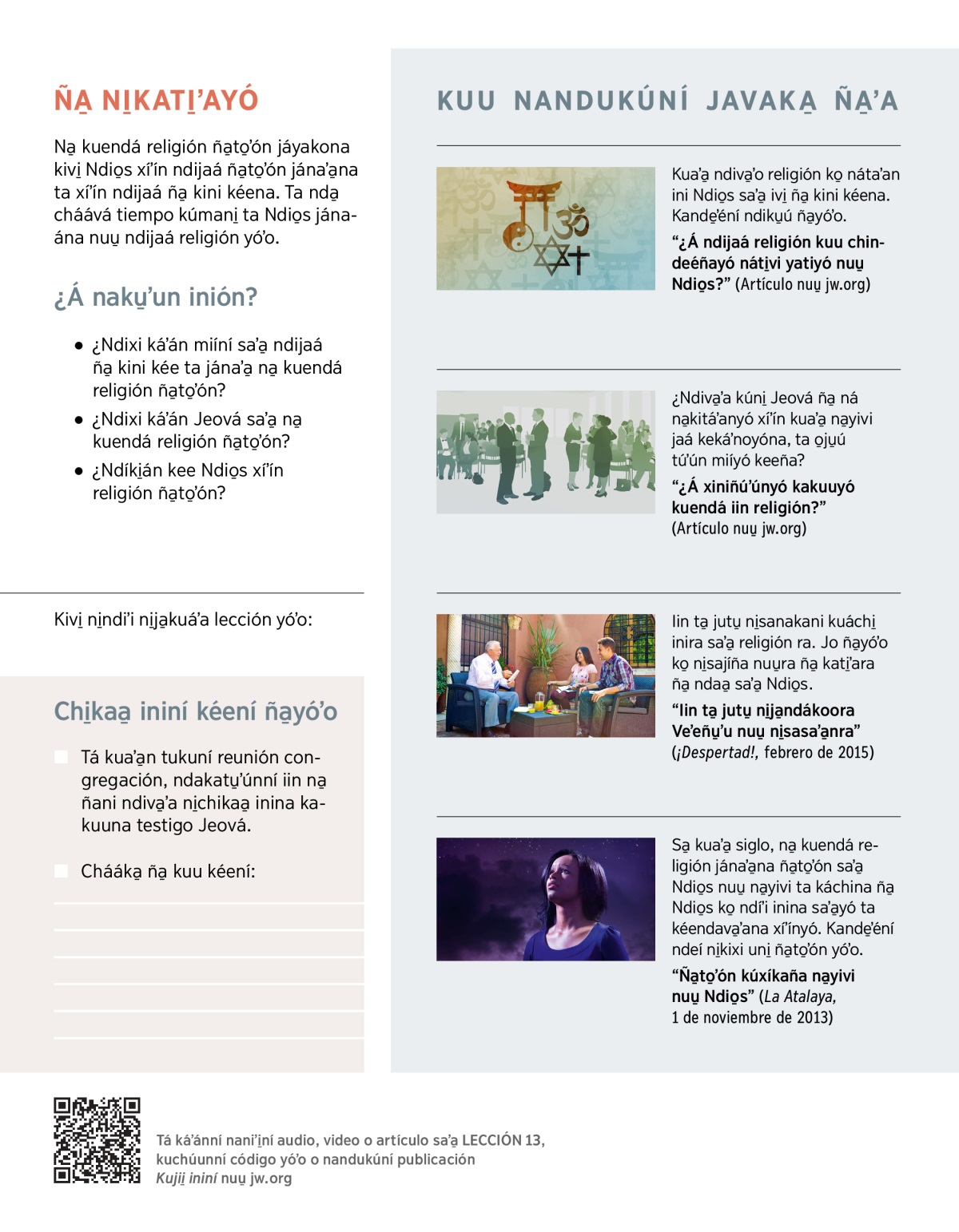 “¿Á ndijaá religión kuu chindeéñayó náti̱vi yatiyó nuu̱ Ndio̱s?” (Artículo nuu̱ jw.org)